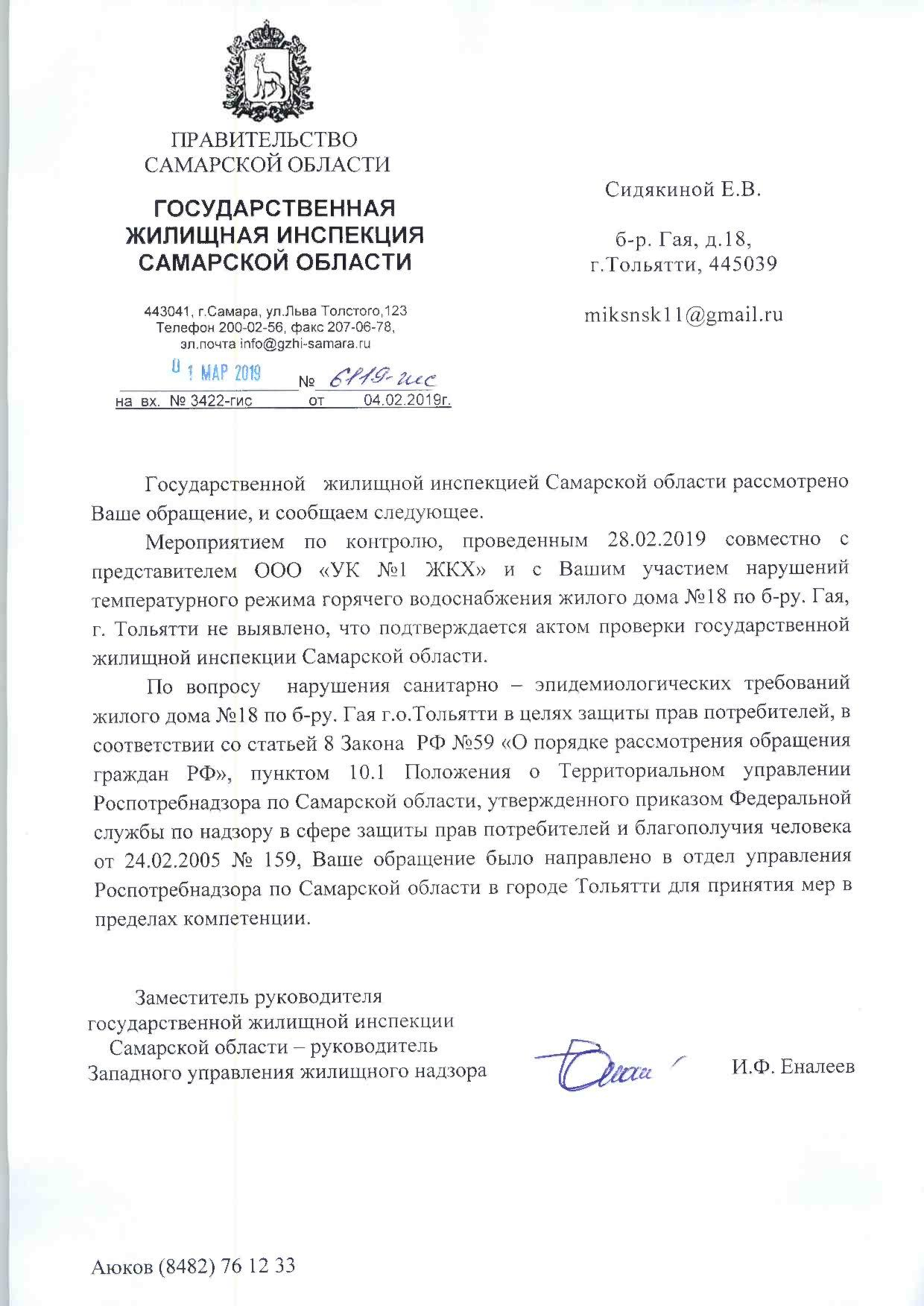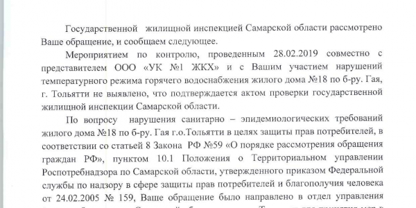 УК " Центр" вновь не выполнила предписание. В Самарскую областную жилищную инспекцию мы тоже обращались в 2017г. Жалоба была отправлена в Тольятти, проверка не была проведена.