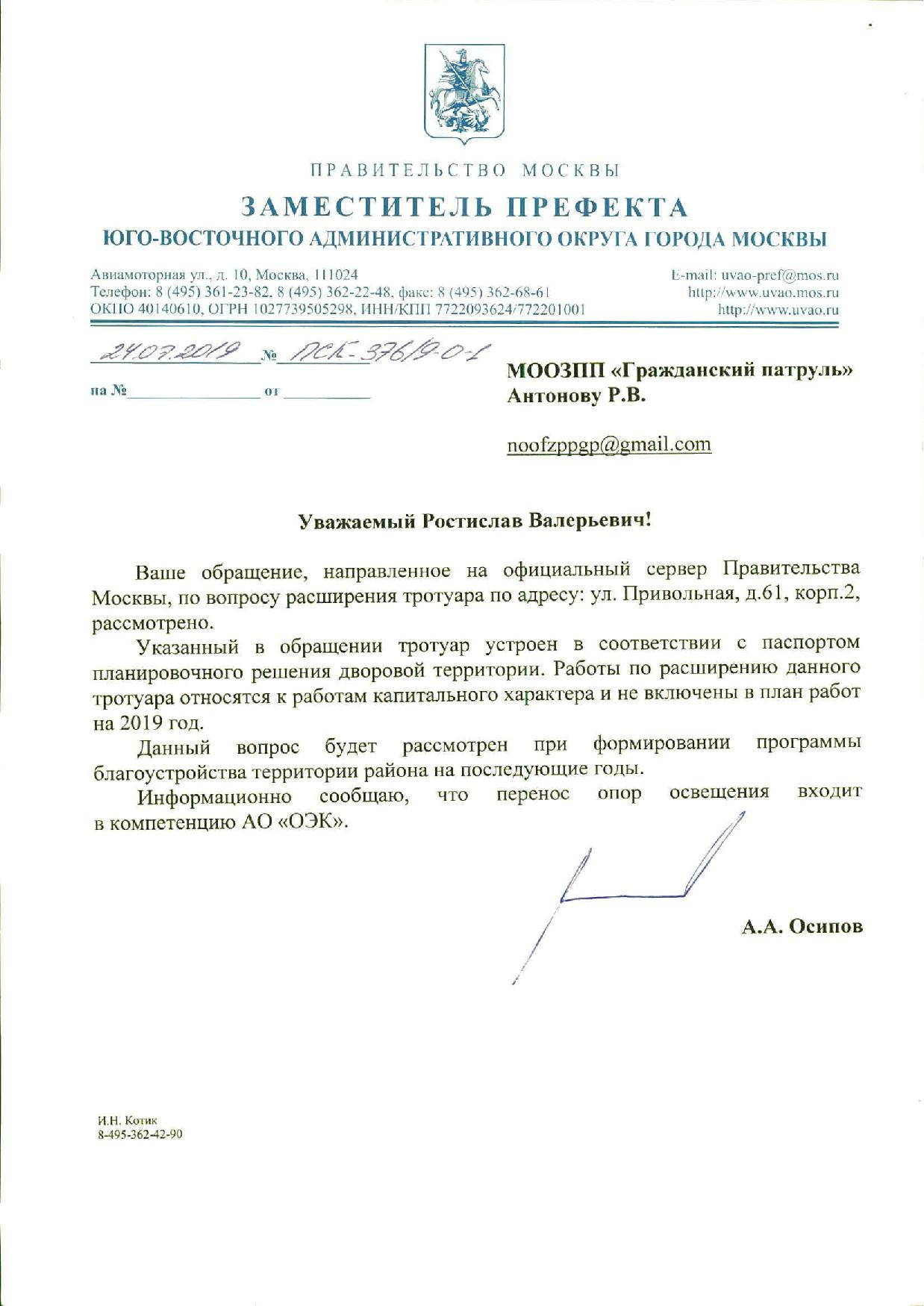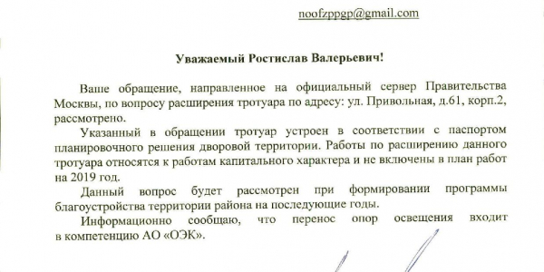 Номер жалобы:56076 Тип жалобы:Прочее Название объекта: Регион:Москва Город:Москва Адрес:Привольная улица, 61к2 Описание жалобы:Не хватает места на тротуаре Статус: