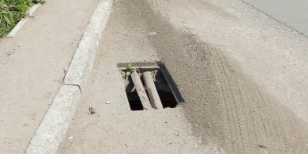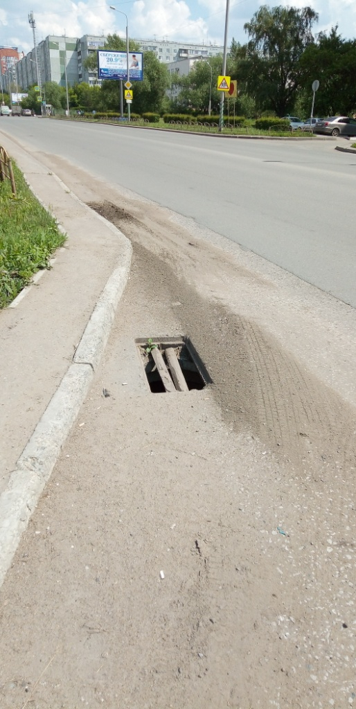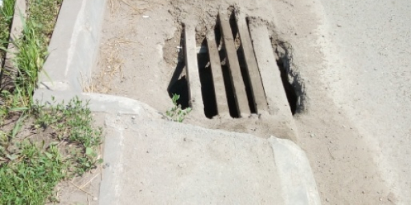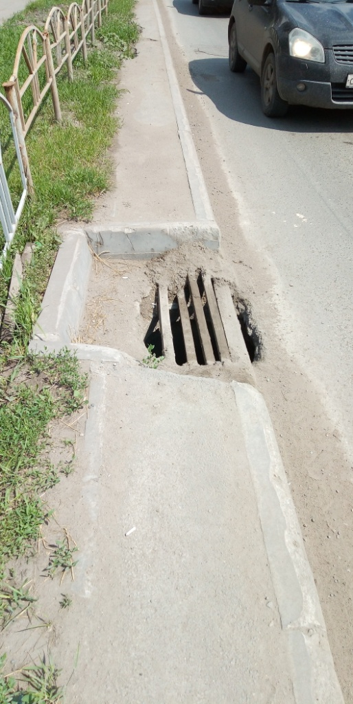 2 фото - ливневка на повороте с улицы во дворы, прямо на проезжей части. Статус:
