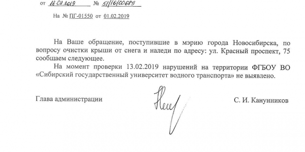 Номер жалобы:48979 Тип жалобы:Иные проблемы ЖКХ Название объекта: Регион:Новосибирская область Город:Новосибирск Адрес:Красный проспект, 82 Описание жалобы:Снег на козырьке при входе Статус: