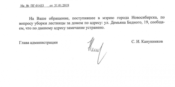 Номер жалобы:48981 Тип жалобы:Иные проблемы ЖКХ Название объекта: Регион:Новосибирская область Город:Новосибирск Адрес:Новосибирск, улица Демьяна Бедного, 19 Описание жалобы:Не расчищена лестница за домом Статус: