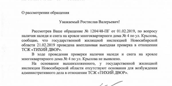Номер жалобы:48903 Тип жалобы:Иные проблемы ЖКХ Название объекта: Регион:Новосибирская область Город:Новосибирск Адрес:улица Крылова, 4 Описание жалобы:ТСЖ - Тихий двор