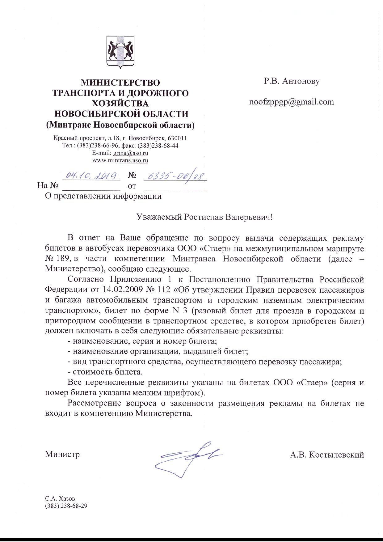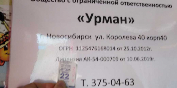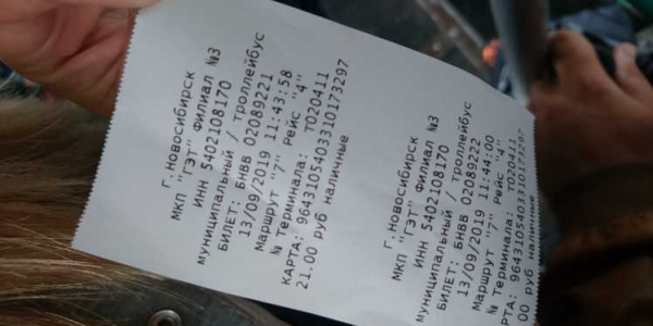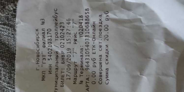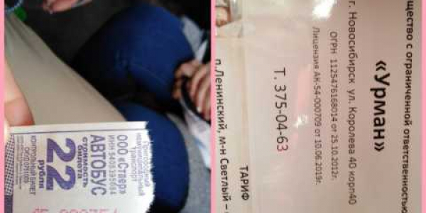 Номер жалобы:60646 Тип жалобы:Общественный транспорт Название объекта: Регион:Новосибирская область Город:Новосибирск Адрес:Новосибирск, Республиканская улица, 5 Описание жалобы: Номер Н612ВА, 189 маршрут, 26 сентября 2019 года, еду из города до Мочище. У кондуктора в наличии билеты на разную стоимость проезда, но почему то за 22руб.дали рекламную бумажку, а за 11 руб. нормальный билет с серией и номером. Прошу разобраться законны ли рекламные билетики и являются ли они страховкой для пассажира во время пути? Статус: