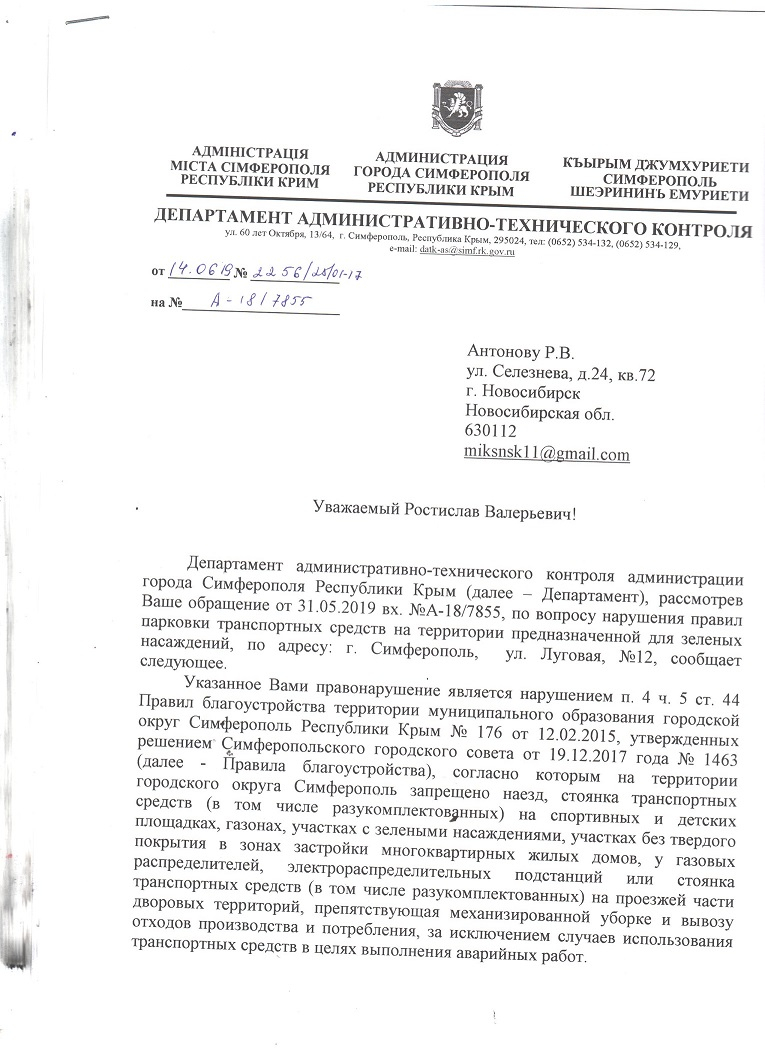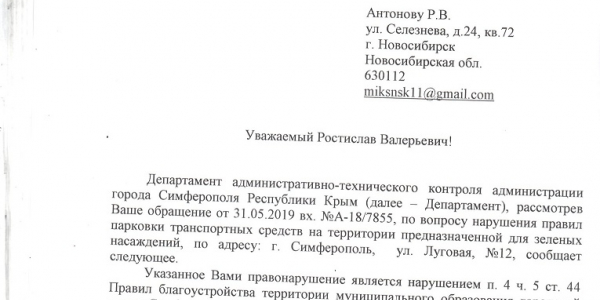 Номер жалобы:55384 Тип жалобы:Прочее Название объекта: Регион:Республика Крым Город:Симферополь Адрес:Луговая улица, 12 Описание жалобы: Парковка на газонах на луговой Статус: