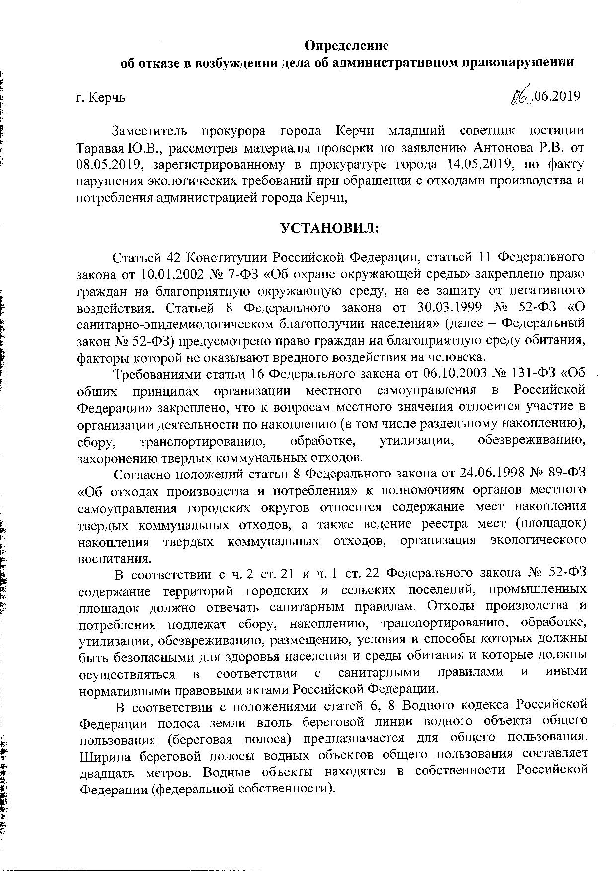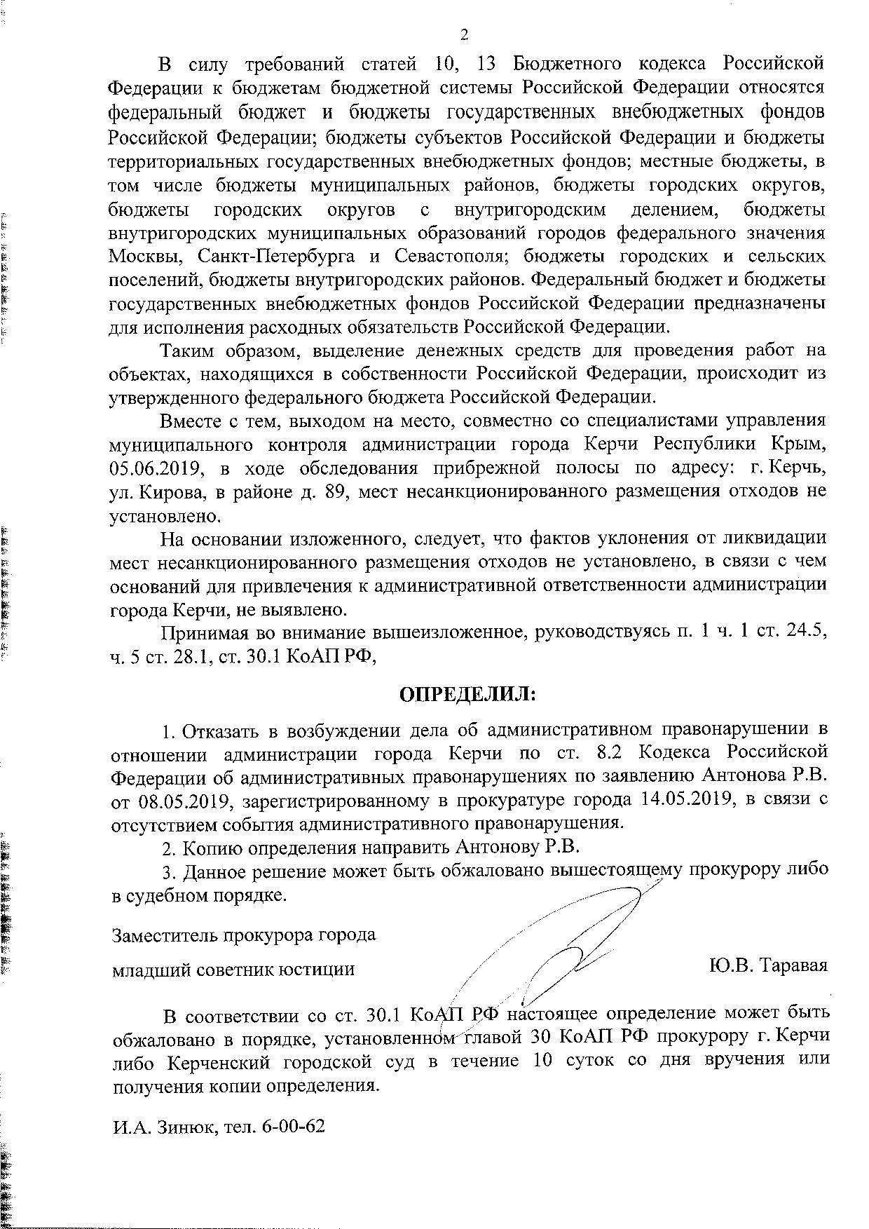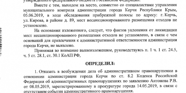 1. Администрация керчи бездействует, не планирует убирать строительный мусор (бетонные плиты на берегу моря), отвечает отписками на обращения граждан.