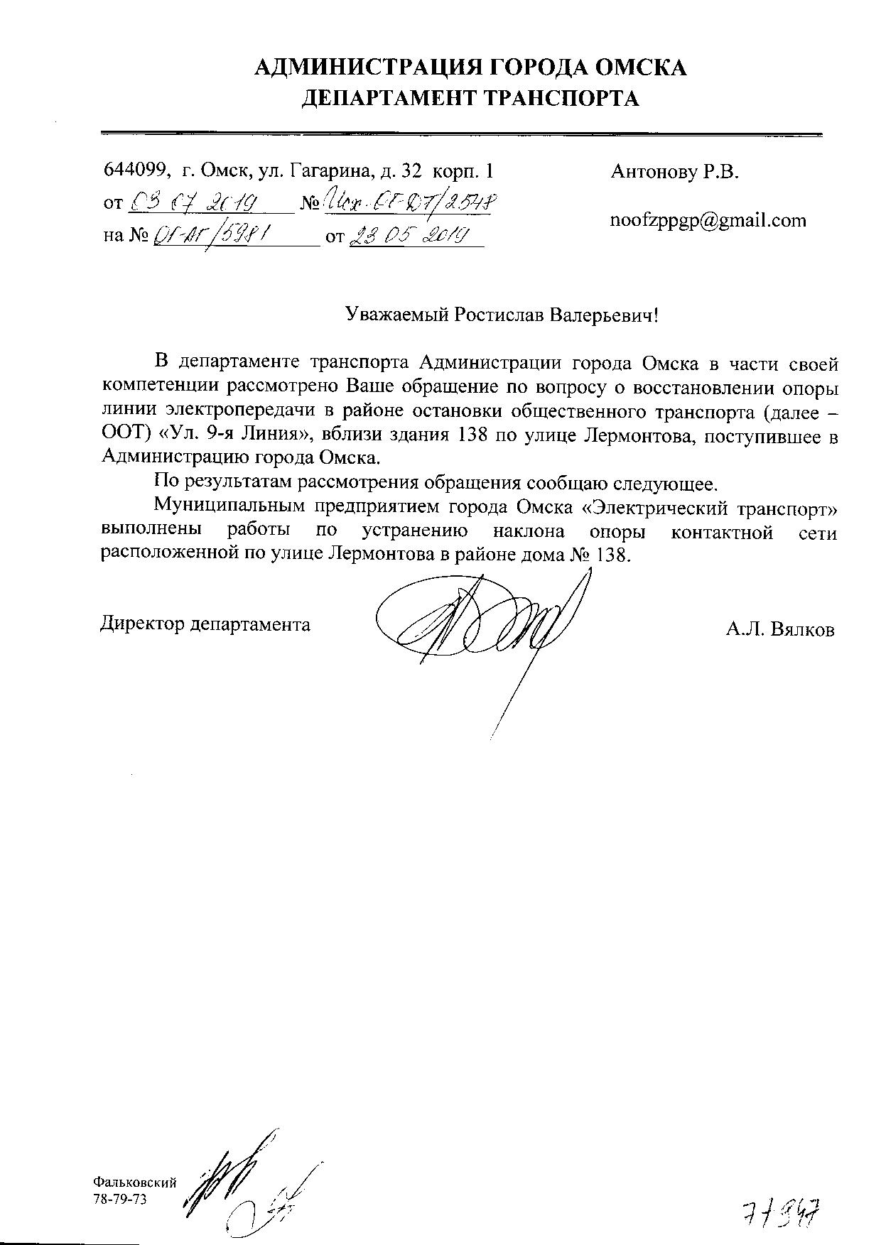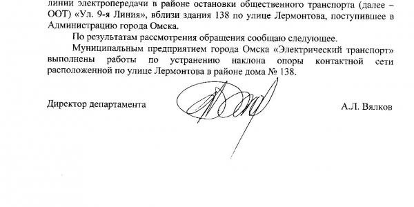 Номер жалобы:55150 Тип жалобы:Прочее Название объекта: Регион:Омская область Город:Омск Адрес:улица Лермонтова, 138 Описание жалобы:Сильно покоится столб на котором расположена линия электропередач и который поддерживает провода трамвайной сети.