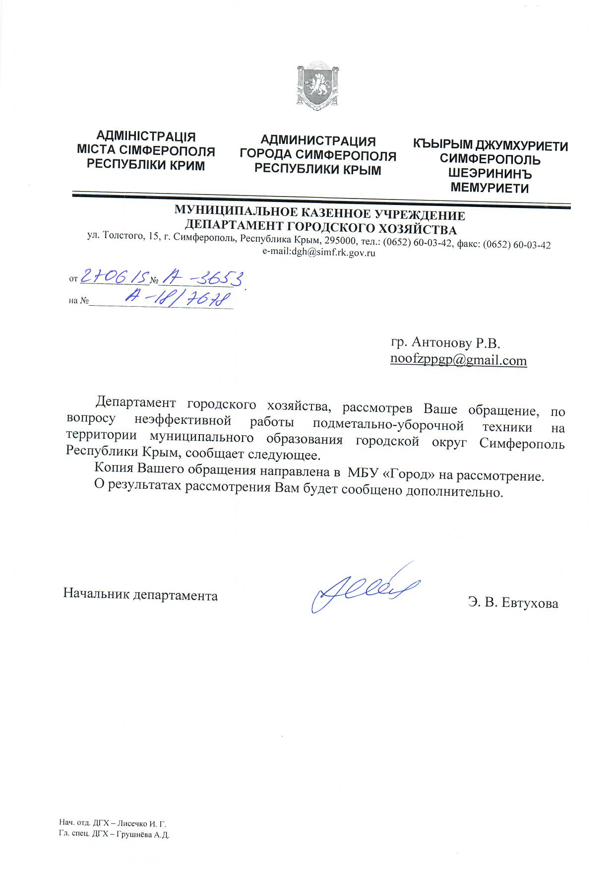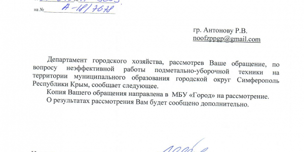 Номер жалобы:54861 Тип жалобы:Прочее Название объекта: Регион:Республика Крым Город:Симферополь Адрес:Луговая улица, 4к1 Описание жалобы:жалоба на действия администрации Симферополя и МБУ "город" в росприроднадзор, прокуратуру