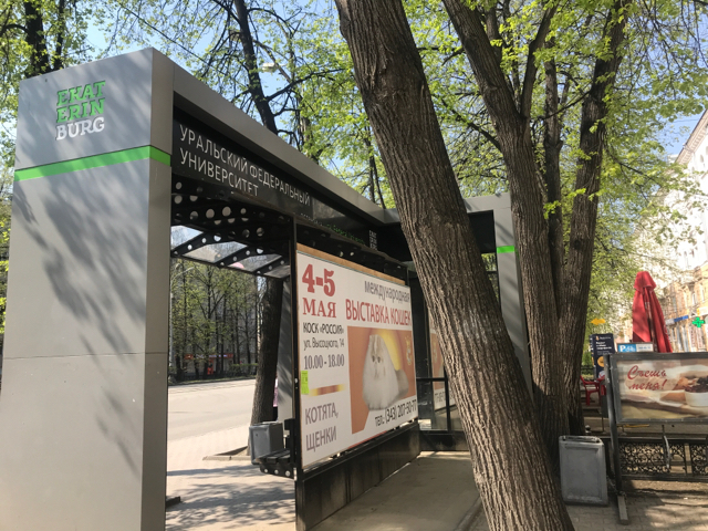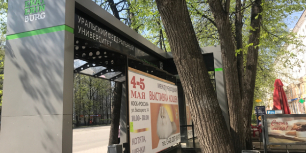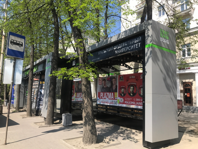 Номер жалобы:54904 Тип жалобы:Прочее Название объекта: Регион:Свердловская область Город:Екатеринбург Адрес:проспект Ленина, 101 Описание жалобы:реклама на остановочном комплексе автобусной остановки Уральский федеральный университет по ул. Ленина в сторону центра Статус: