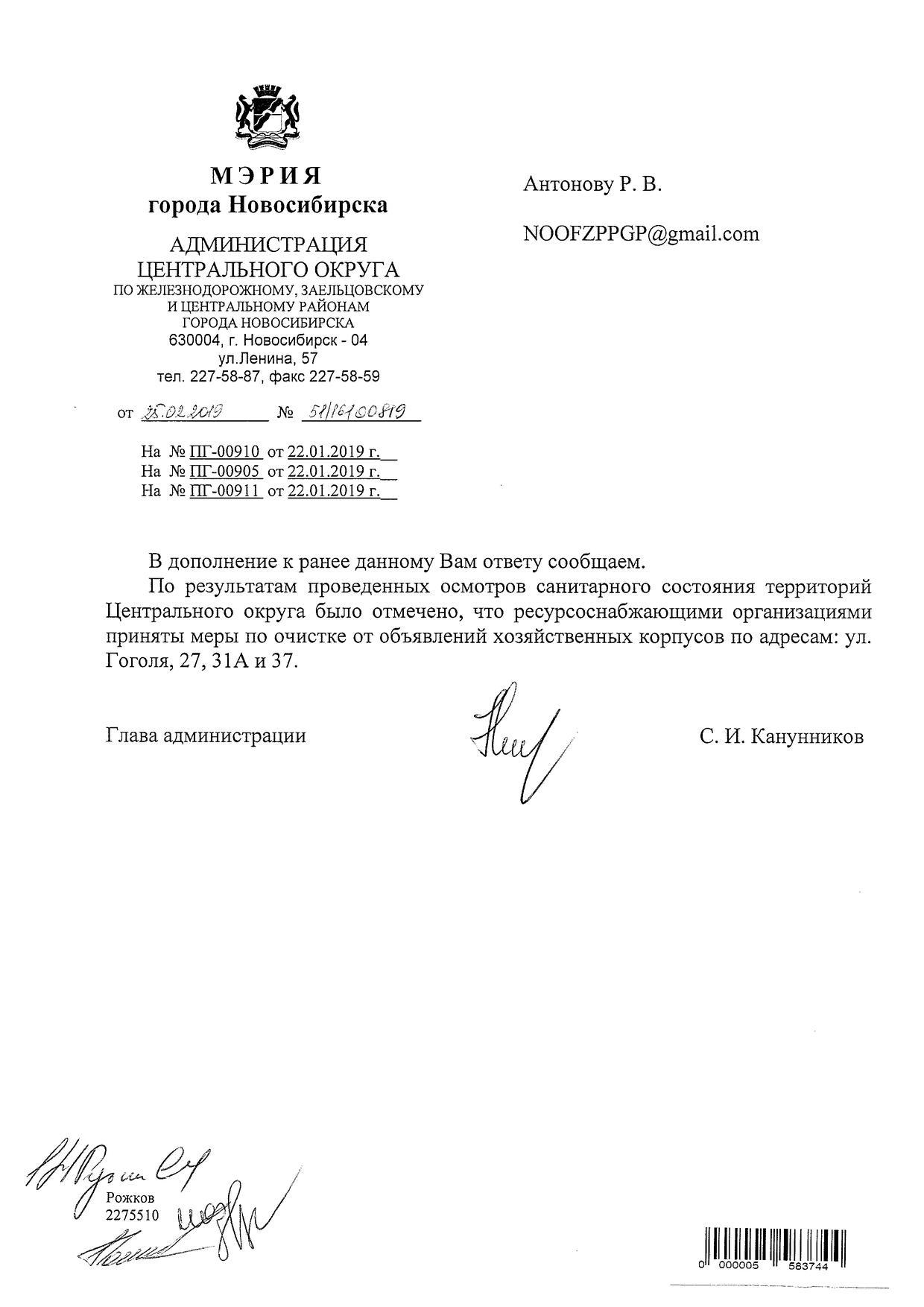 Номер жалобы:48544 Тип жалобы:Иные проблемы ЖКХ Название объекта: Регион:Новосибирская область Город:Новосибирск Адрес:улица Гоголя, 31А Описание жалобы:Объявления на хоз корпусе Статус: