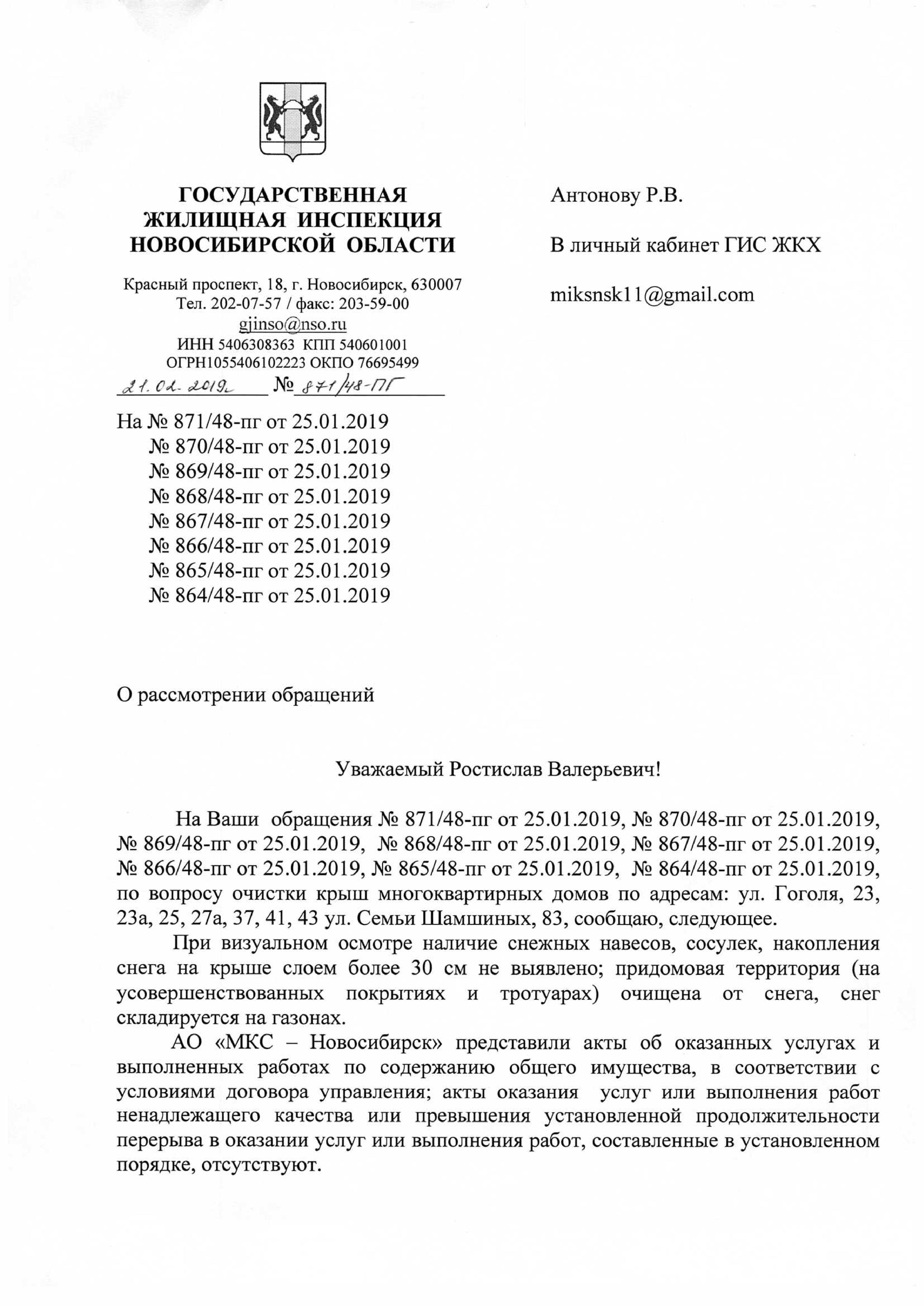 Номер жалобы:48527 Тип жалобы:Иные проблемы ЖКХ Название объекта: Регион:Новосибирская область Город:Новосибирск Адрес:улица Гоголя, 27А Описание жалобы:ЗАО "МКС-НОВОСИБИРСК"