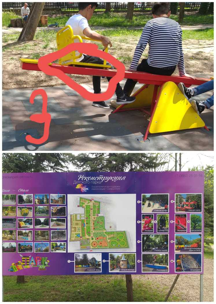 Номер жалобы:54442 Тип жалобы:Прочее Название объекта: Регион:Республика Крым Город:Симферополь Адрес:Симферополь, Детский парк Описание жалобы:По мнению администрации МБУ Детский парк необходимо тратить бюджетные средства на размещение плакатов на детской площадке, призывающиих к борьбе с террором (контекст плаката не понятен, вызывает чувство беспричинной опасности, единственное его назначение нагнетать страх и угрозу среди населения) и просвещению основ беозпасности с изображением персонажей, напоминающих мистера говняшку из одноименного мультсериала " Южный парк".