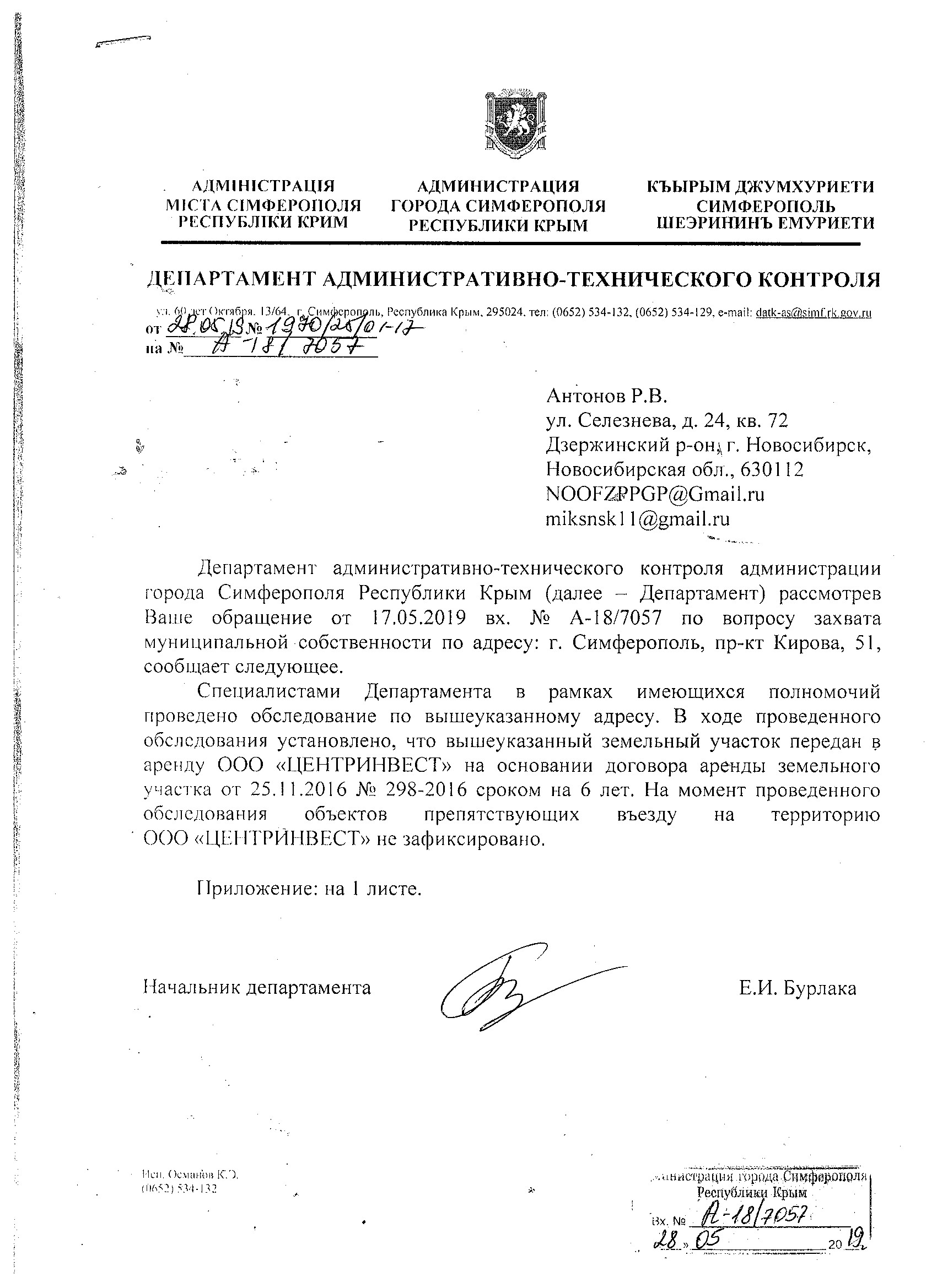 Номер жалобы:54465 Тип жалобы:Прочее Название объекта: Регион:Республика Крым Город:Симферополь Адрес:проспект Кирова, 51 Описание жалобы:Приложение не было отправлено с файлом ответа