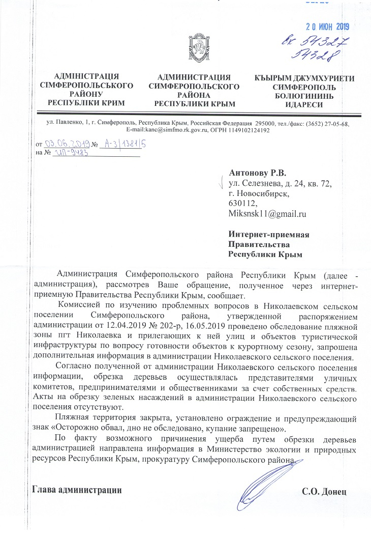 Номер жалобы:54327 Тип жалобы:Прочее Название объекта: Регион:Республика Крым Город:поселок городского типа Николаевка Адрес:Набережная улица, 18 Описание жалобы:вырублены деревья рядм с дромом 18 Статус: