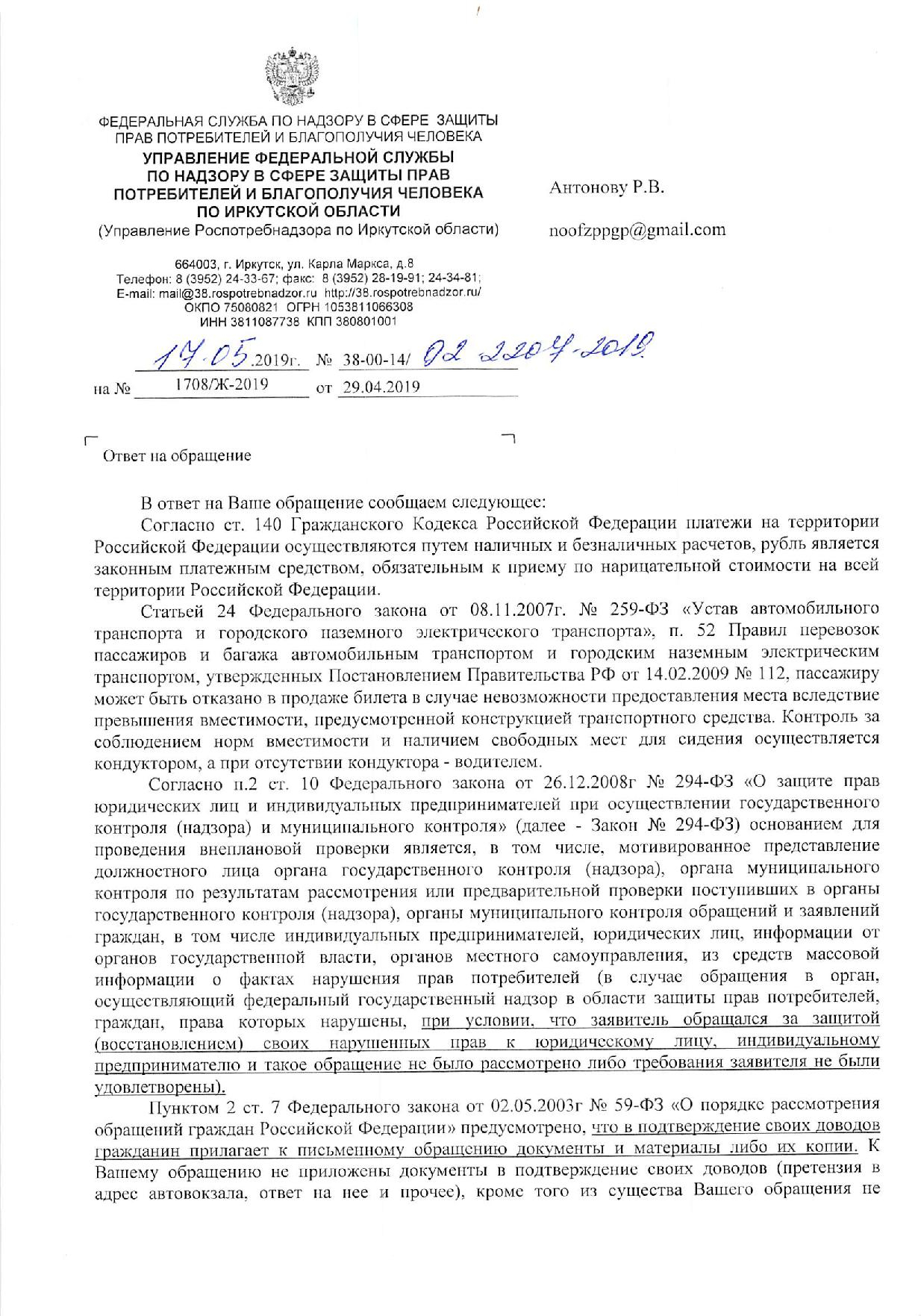 Номер жалобы:54153 Тип жалобы:Прочее Название объекта: Регион:Иркутская область Город:Слюдянка Адрес:улица Ленина, 99Б Описание жалобы:Автовокзал Слюдянка. Отказываются принимать российские рубли в качестве оплаты за билеты (банкнота 5000р) Статус: