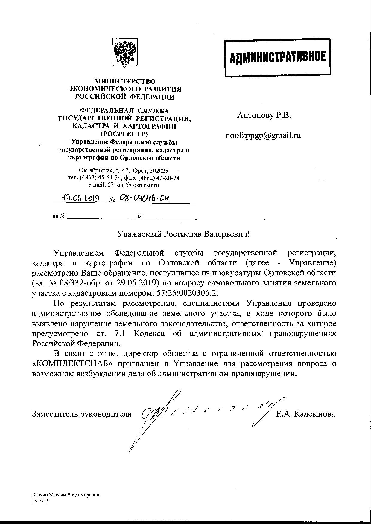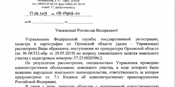 Отправить в росреестр, прокуратуру, городскую администрацию Статус:
