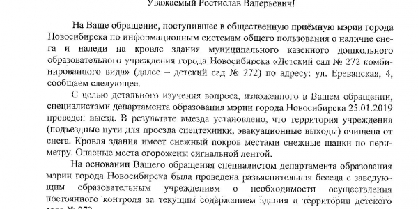 Номер жалобы:48445 Тип жалобы:Иные проблемы ЖКХ Название объекта: Регион:Новосибирская область Город:Новосибирск Адрес:Ереванская улица, 4 Описание жалобы:Ереванская 6, снег на крыше дома Статус: