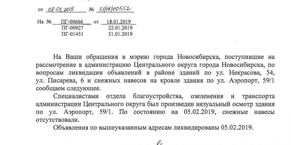 Номер жалобы:48360 Тип жалобы:Иные проблемы ЖКХ Название объекта: Регион:Новосибирская область Город:Новосибирск Адрес:Новосибирск, улица Аэропорт, 12 Описание жалобы:Объявления в неположенном месте Статус: