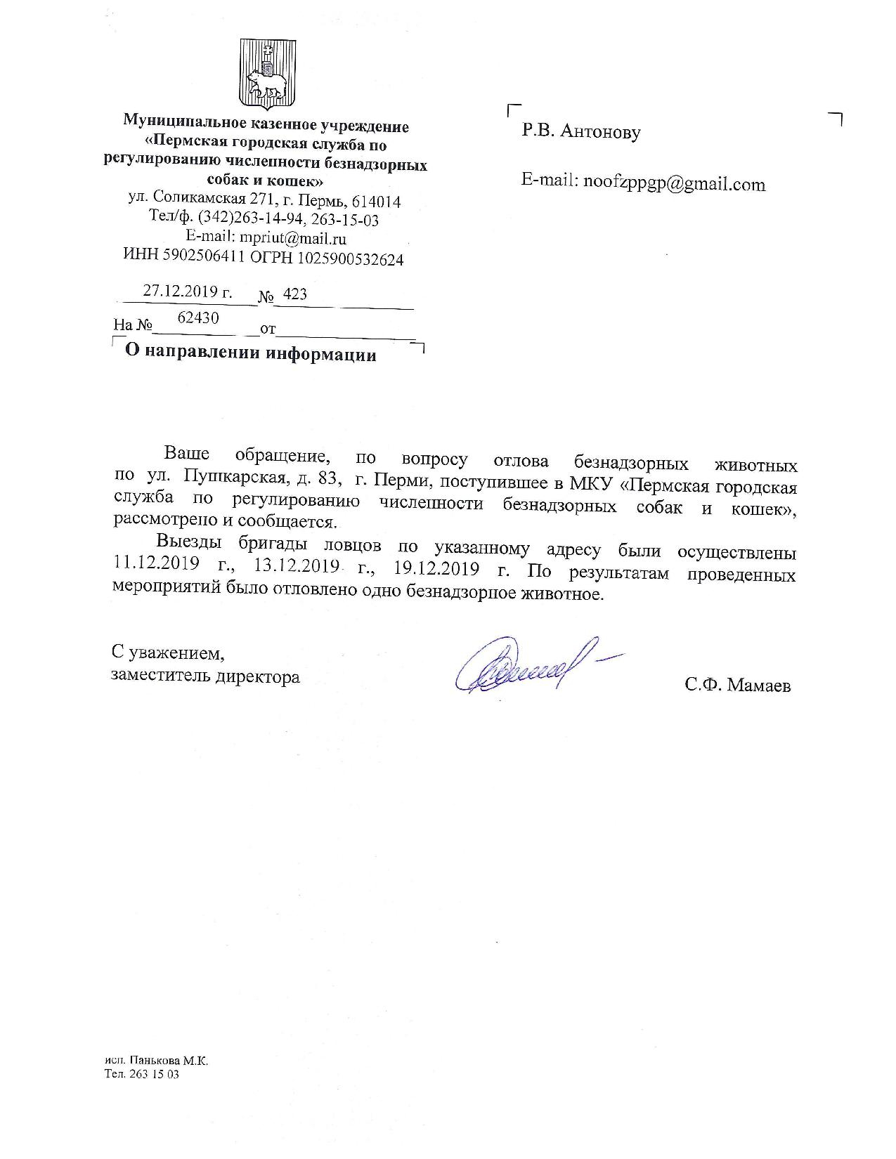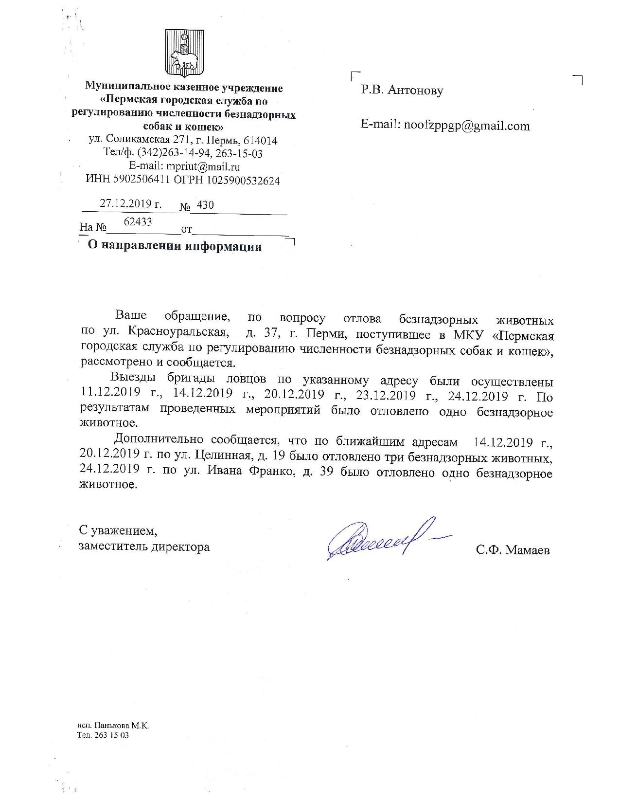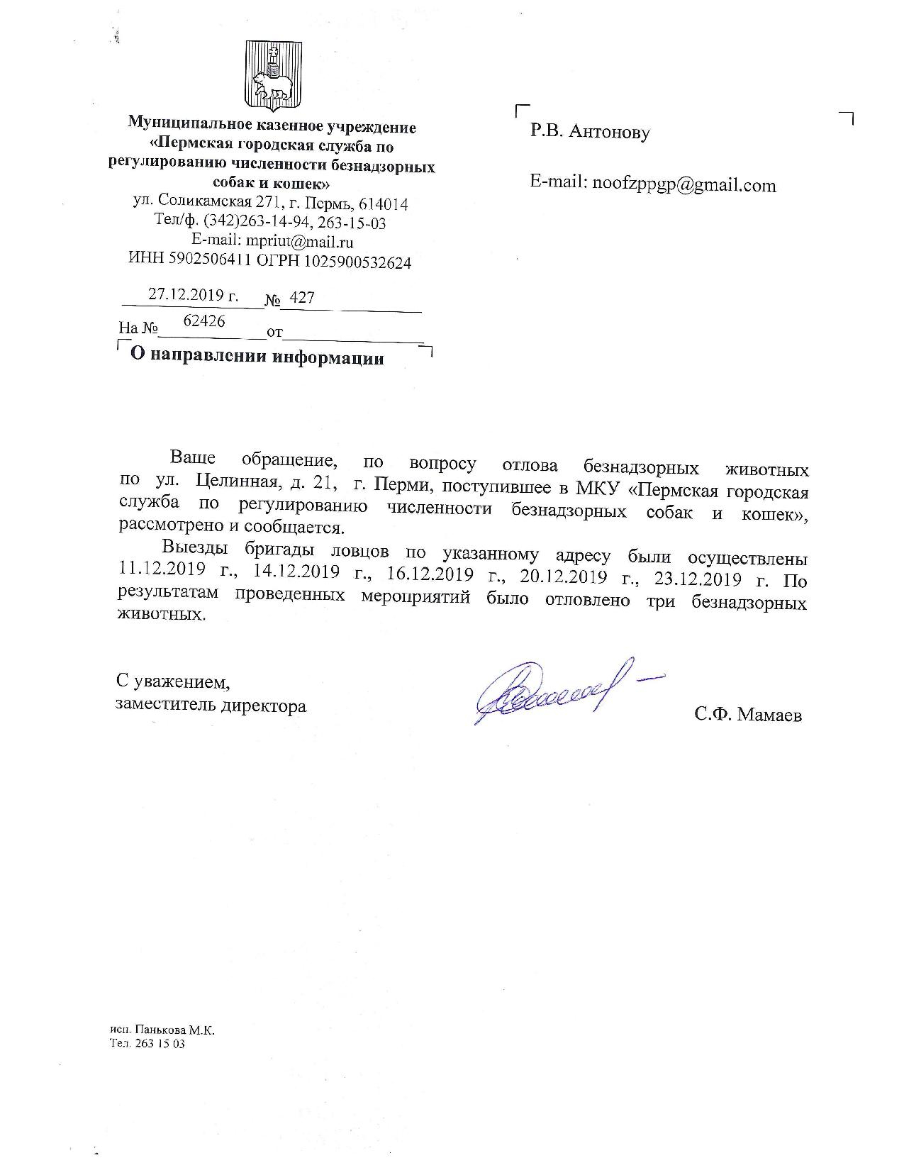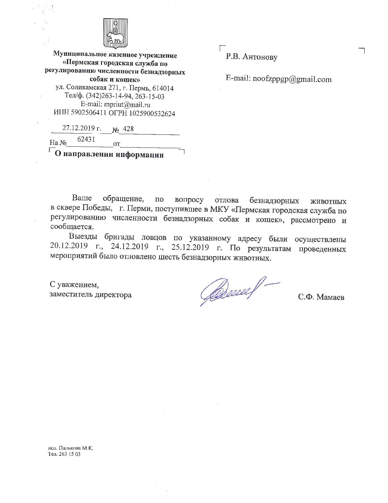 https://go.2gis.com/pnrv2 ) пришел ранее ответ,что отловлено 2собаки,но заявитель указал, что остальные 15 остались на месте. Просим убрать всех остальных, ради безопасности себя и детей. Статус: