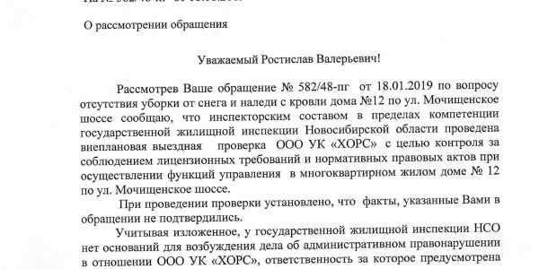 Номер жалобы:48327 Тип жалобы:Иные проблемы ЖКХ Название объекта: Регион:Новосибирская область Город:Новосибирск Адрес:Мочищенское шоссе, 12 Описание жалобы:Снег на крыше дома Статус:
