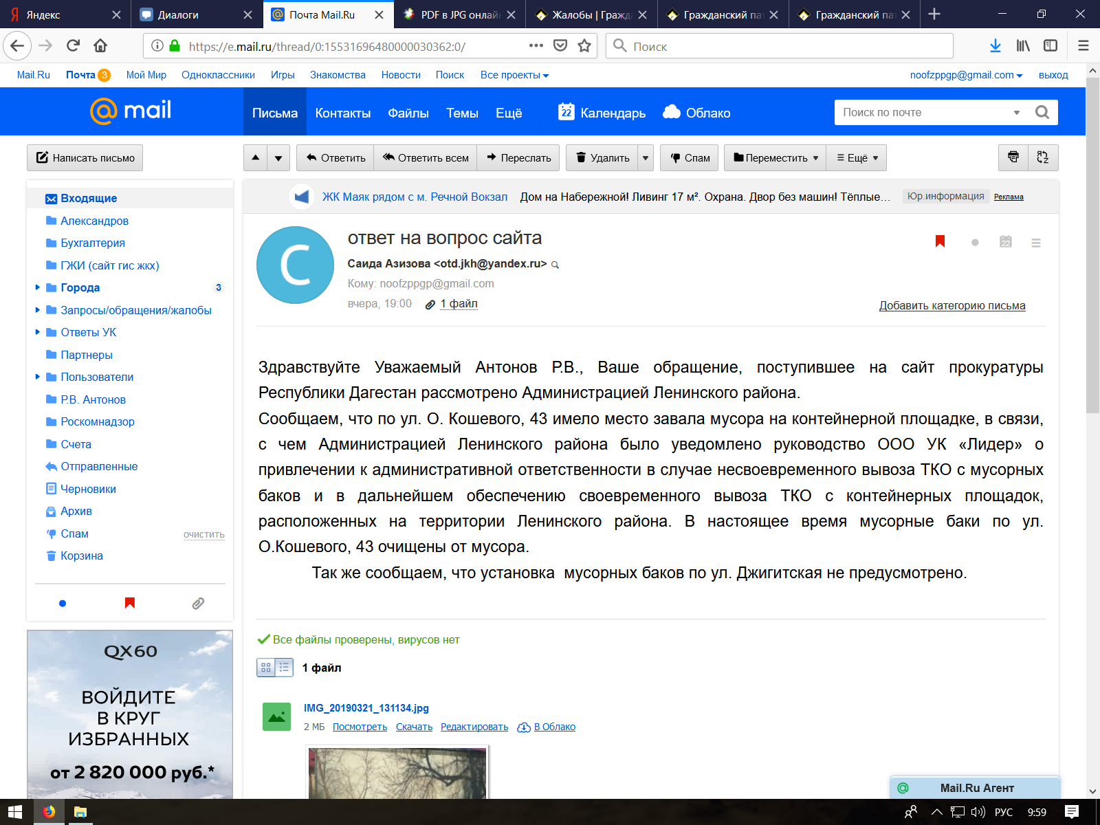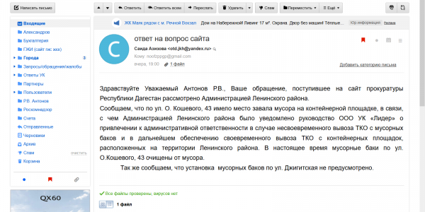 Номер жалобы:48069 Тип жалобы:Иные проблемы ЖКХ Название объекта: Регион:Республика Дагестан Город:Махачкала Адрес:Джигитская улица Описание жалобы:На весь посёлок нет мусорных баков. Мкр Джигит, Адам Интернешнл, Весна, Животноводов Статус: