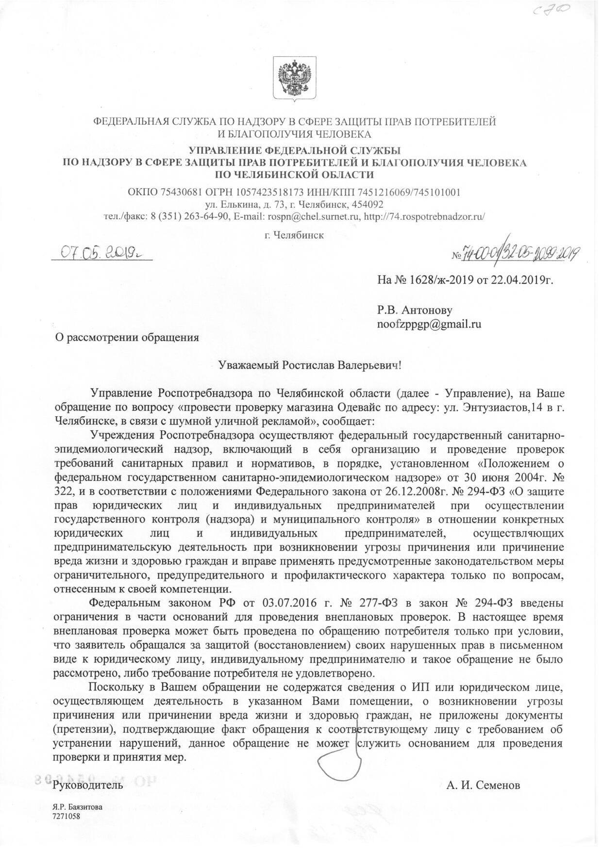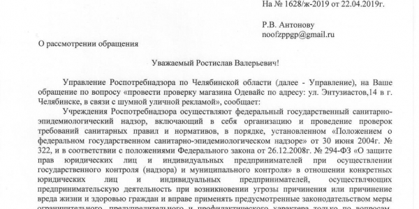 Номер жалобы:53399 Тип жалобы:Прочее Название объекта: Регион:Челябинская область Город:Челябинск Адрес:улица Энтузиастов, 14 Описание жалобы:Шумная уличная реклама, свыше 80 ДБ (магазин Одевайс) Работает постоянно Статус: