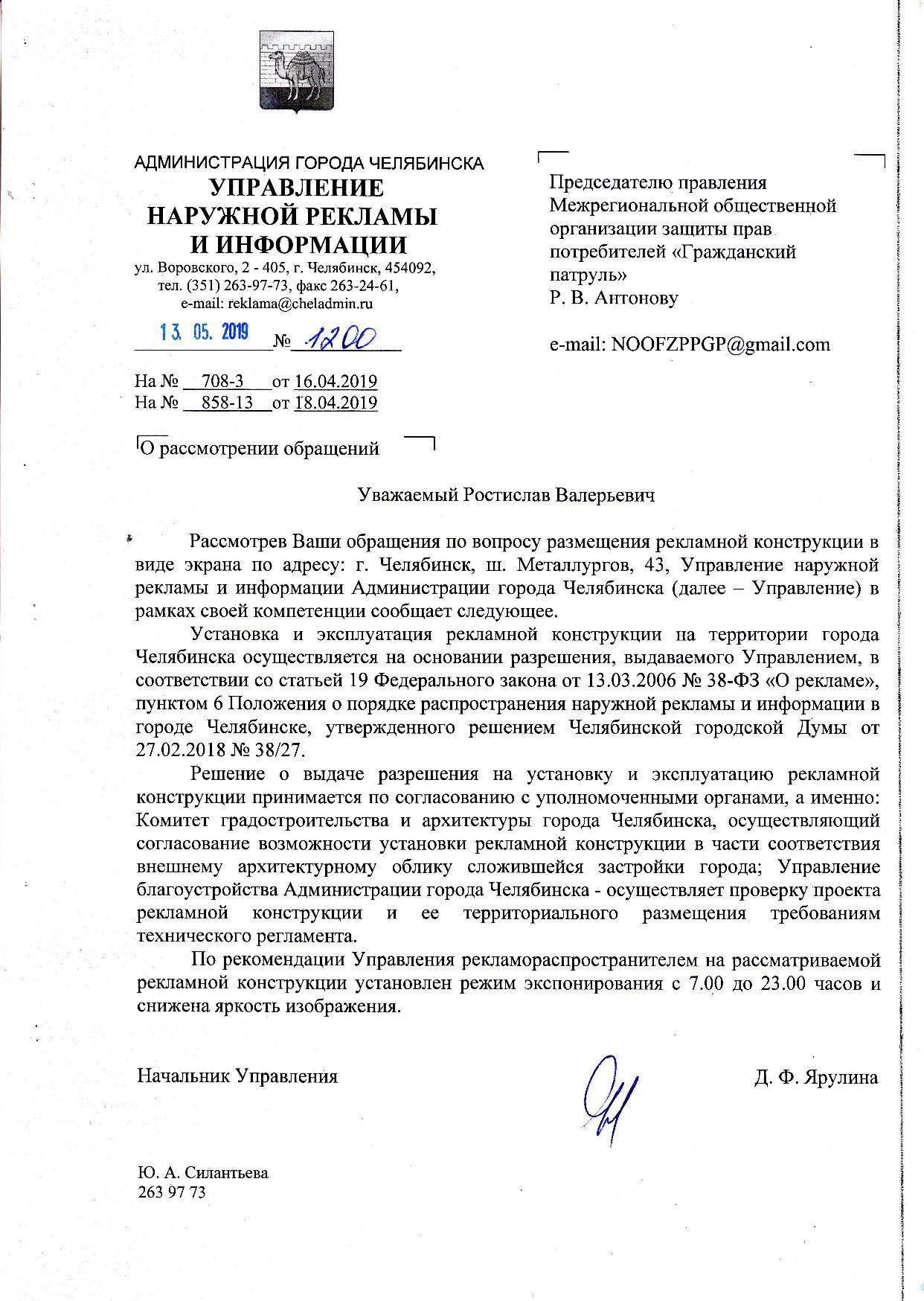 Номер жалобы:53446 Тип жалобы:Прочее Название объекта: Регион:Челябинская область Город:Челябинск Адрес:шоссе Металлургов, 43 Описание жалобы:На перекрестке Ш.металлургов и ул.черкасская установлен рекламный экран, который в тёмное время суток отвлекает и ослепляет водителей, а также мешает жителям близлежащих домов. Просьба -снизить яркость экрана Статус: