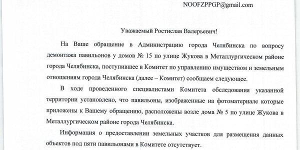 Номер жалобы:53036 Тип жалобы:Прочее Название объекта: Регион:Челябинская область Город:Челябинск Адрес:улица Жукова, 15 Описание жалобы:Просьба проверить законность установленных торговых ларьков напротив магазина пятерочка Статус: