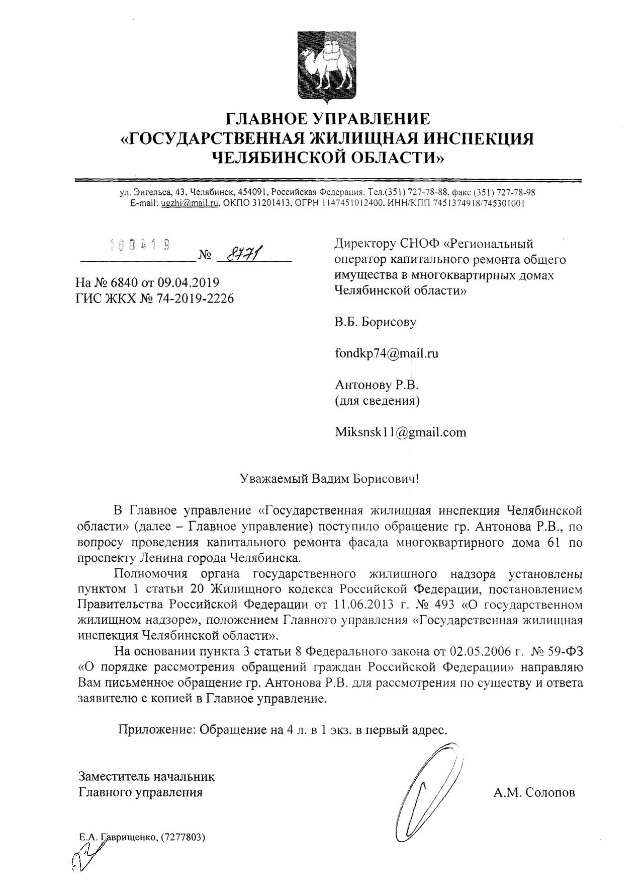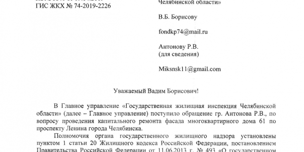 Номер жалобы:52966 Тип жалобы:Прочее Название объекта: Регион:Челябинская область Город:Челябинск Адрес:проспект Ленина, 61 Описание жалобы:Перенаправлено регоператору
