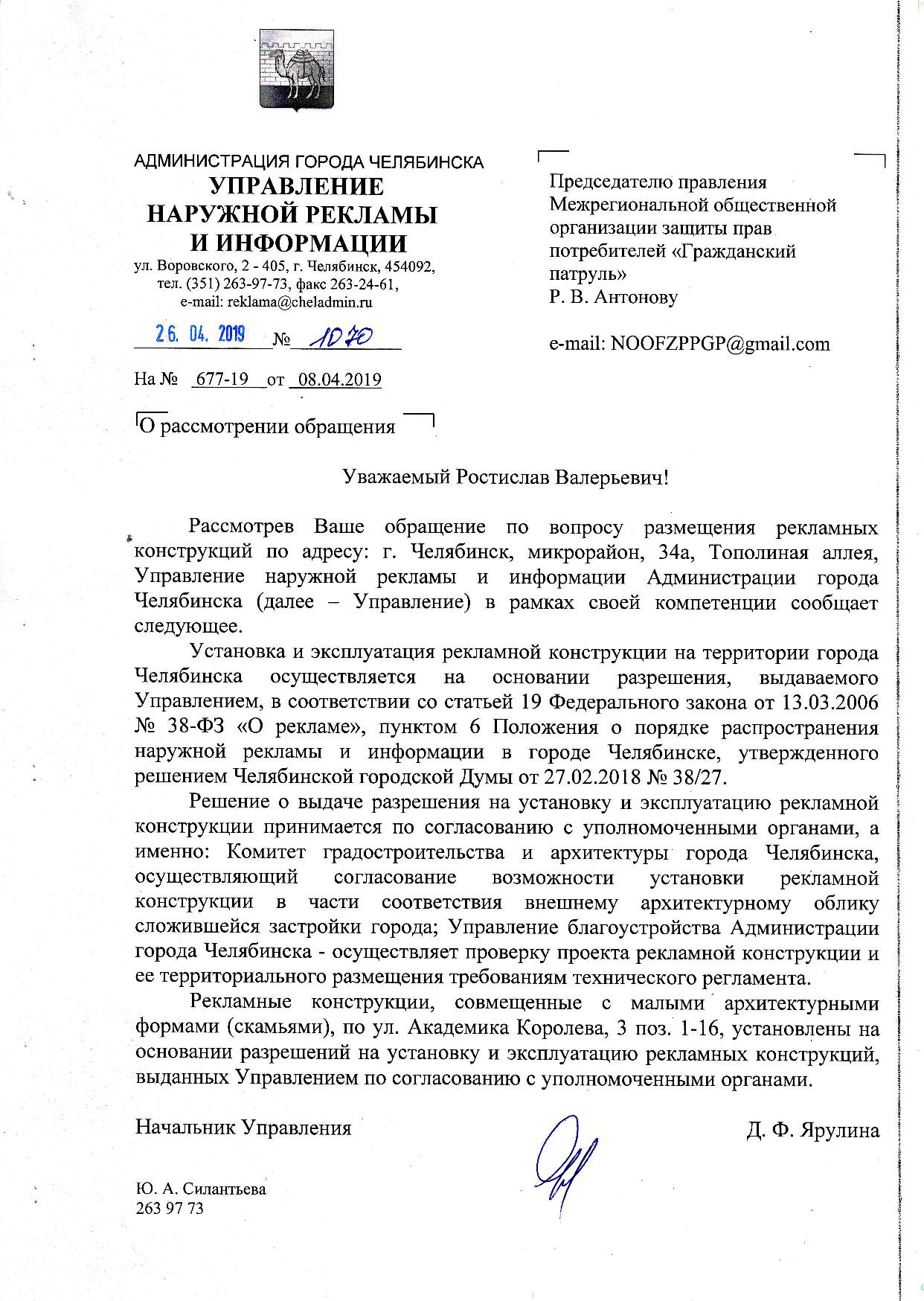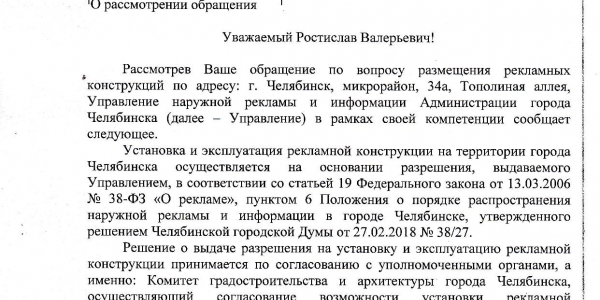 Номер жалобы:52972 Тип жалобы:Прочее Название объекта: Регион:Челябинская область Город:Челябинск Адрес:микрорайон 34А Описание жалобы:Не законная реклама на самих скамейках, на Тополиной аллее. Их там около десятка. Статус: