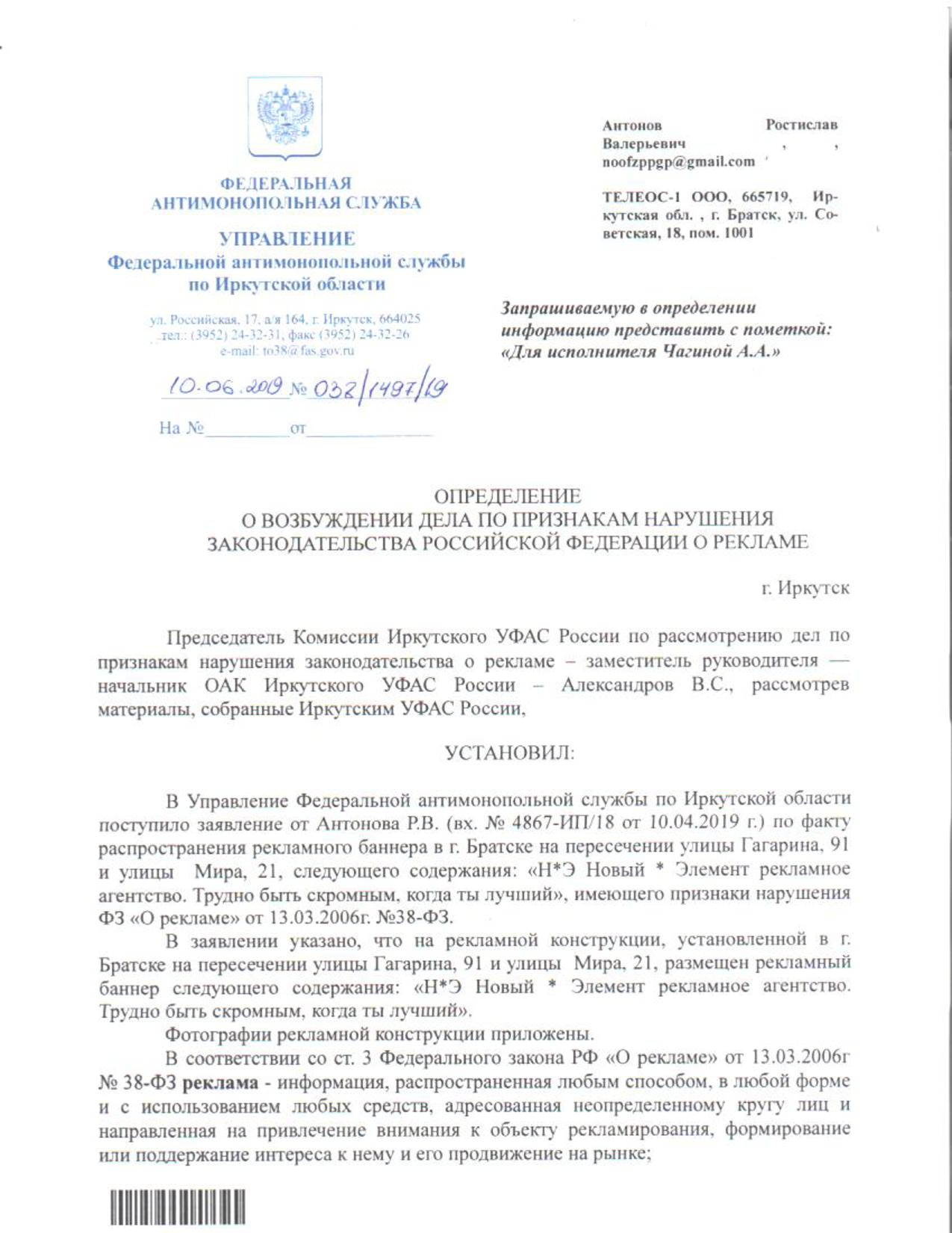 На улице Мира 21 размещены баннеры, нарушающие п. 4 ч. 1. ст. 5 ФЗ «О рекламе» о недобросовестной конкуренции. Статус: