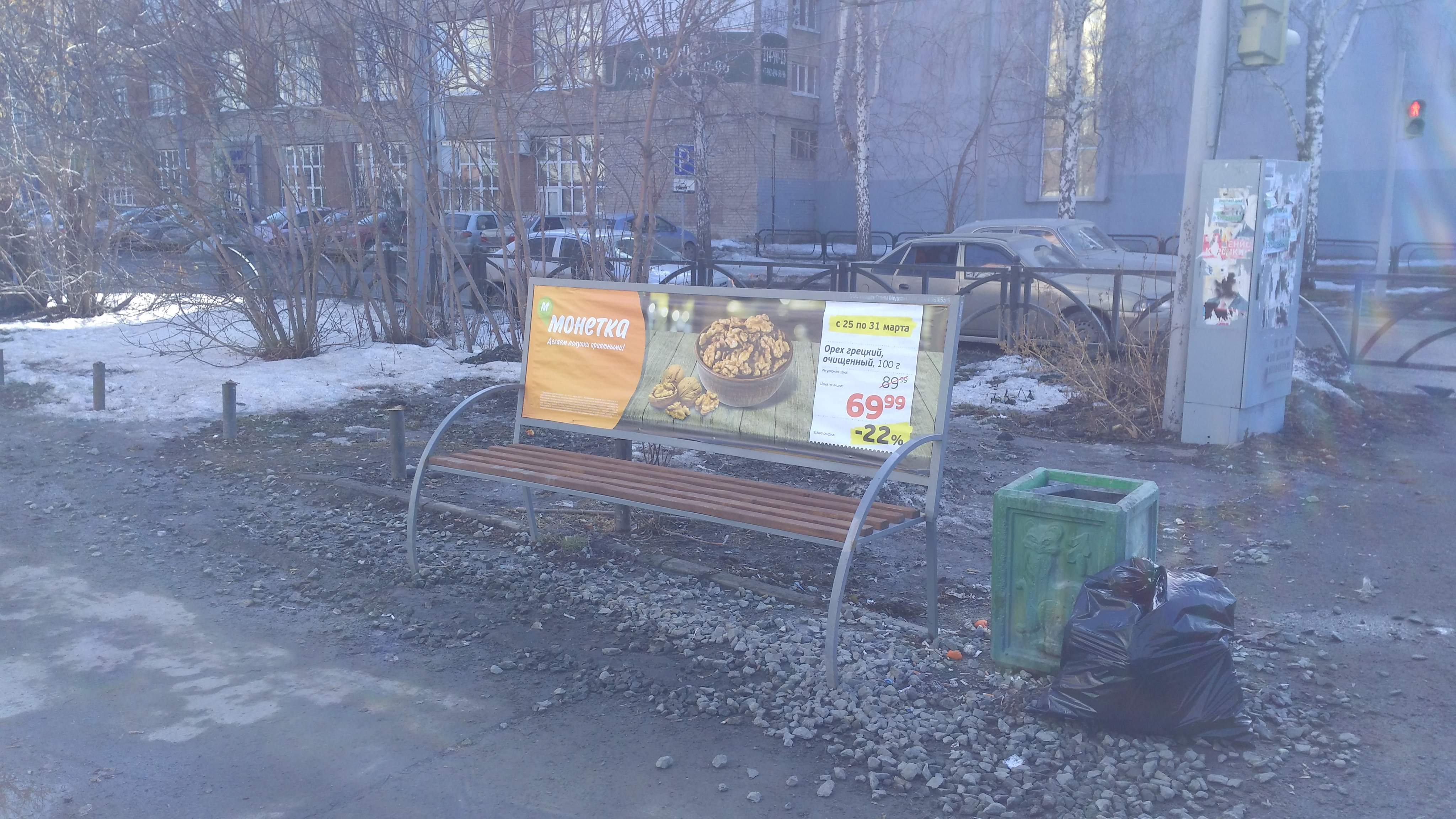 Номер жалобы:52811 Тип жалобы:Прочее Название объекта:МУГИСО Регион:Свердловская область Город:Екатеринбург Адрес:Щорса, 30а Описание жалобы:Нелегальные рекламные конструкции в виде скамеек на всех 4-х углах перекрёстка улиц Щорса и Машинная Статус: