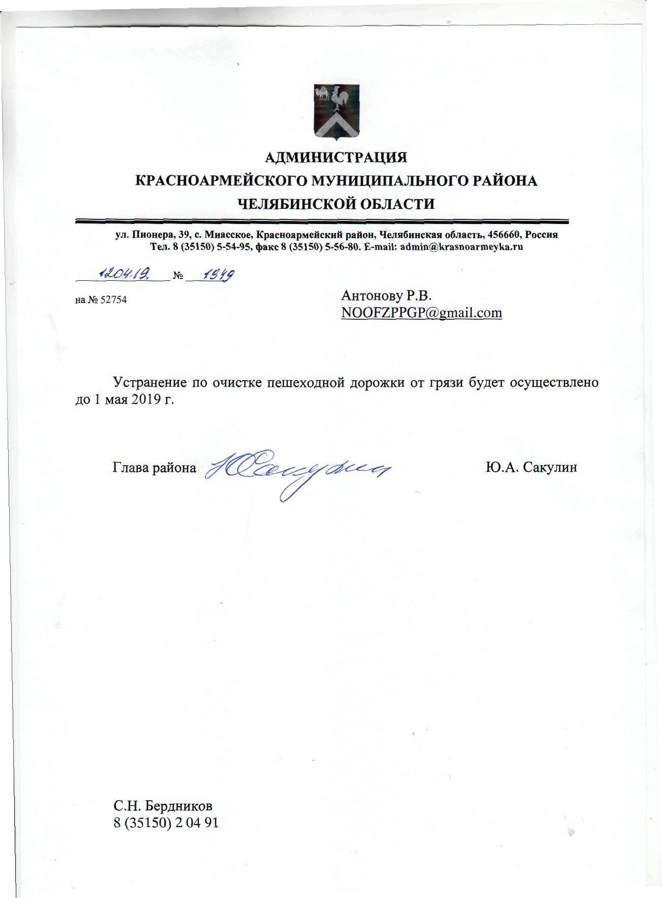 Номер жалобы:52754 Тип жалобы:Прочее Название объекта: Регион:Челябинская область Город:село Миасское Адрес:улица Ленина, 4 Описание жалобы:После проведения ремонтных работ осенью 2018 года, возле дома 4, ул. Ленина, на пешеходной дорожке вблизи ул. Советской оставили грунт. Необходимо очистить пешеходную дорожку от грязи.