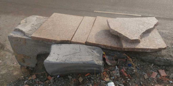 Первая доска выбита практически полностью. Вторая вращается вокруг своей оси, что не безопасно для пешеходов. Статус: