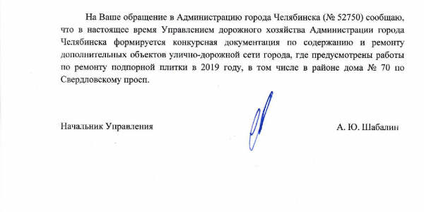 Номер жалобы:52748 Тип жалобы:Прочее Название объекта: Регион:Челябинская область Город:Челябинск Адрес:проспект Победы, 207 Описание жалобы:569-3 Отвалился бордюрный камень, рядом с центральным входом в Теплотехнический институт. Прошу привести все в должный вид. Статус: