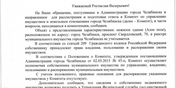 Номер жалобы:52751 Тип жалобы:Прочее Название объекта: Регион:Челябинская область Город:Челябинск Адрес:Свердловский проспект, 70 Описание жалобы:Вход в офисы ТК Алое поле разбит. Прошу восстановить крыльцо. Статус: