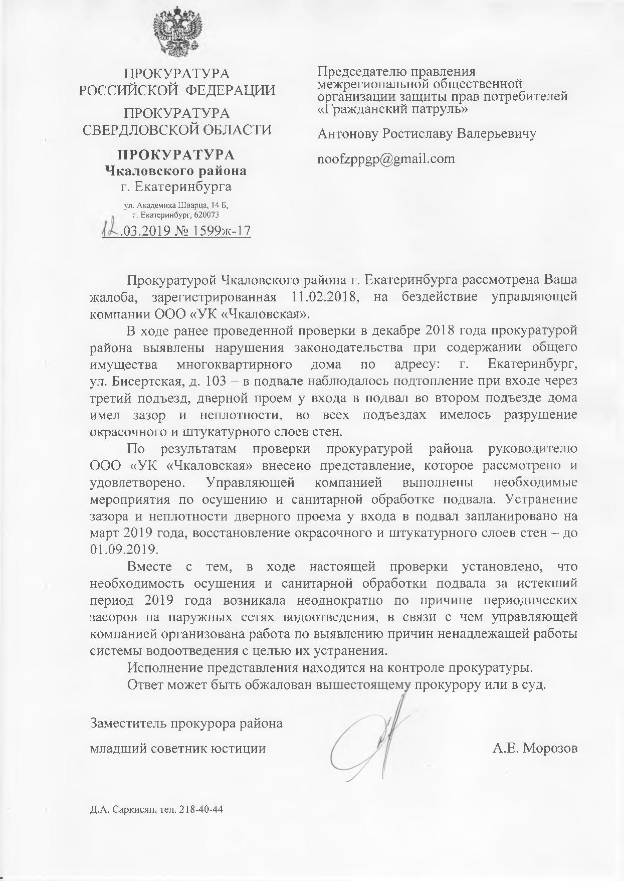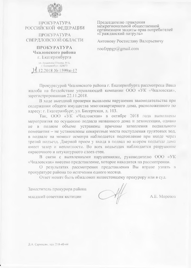 Номер жалобы:47520 Тип жалобы:Иные проблемы ЖКХ Название объекта:УК Чкаловская Регион:Свердловская область Город:Екатеринбург Адрес:ул Бисертская, 103 Описание жалобы:Здравствуйте, хочу рассказать проблему нашего дома по адресу г Екатеринбург ул Бисертская 103 ужасная вонь из подвала травит весь дом , не говоря уже о комарах круглый год, кусают всех. В нашем доме много детей и стариков , ужасное состояние подъезда, электрокабеля не чем не закрыты, оголены, ремонт не делался уже давно, помогите пожалуйста разобраться. Статус: