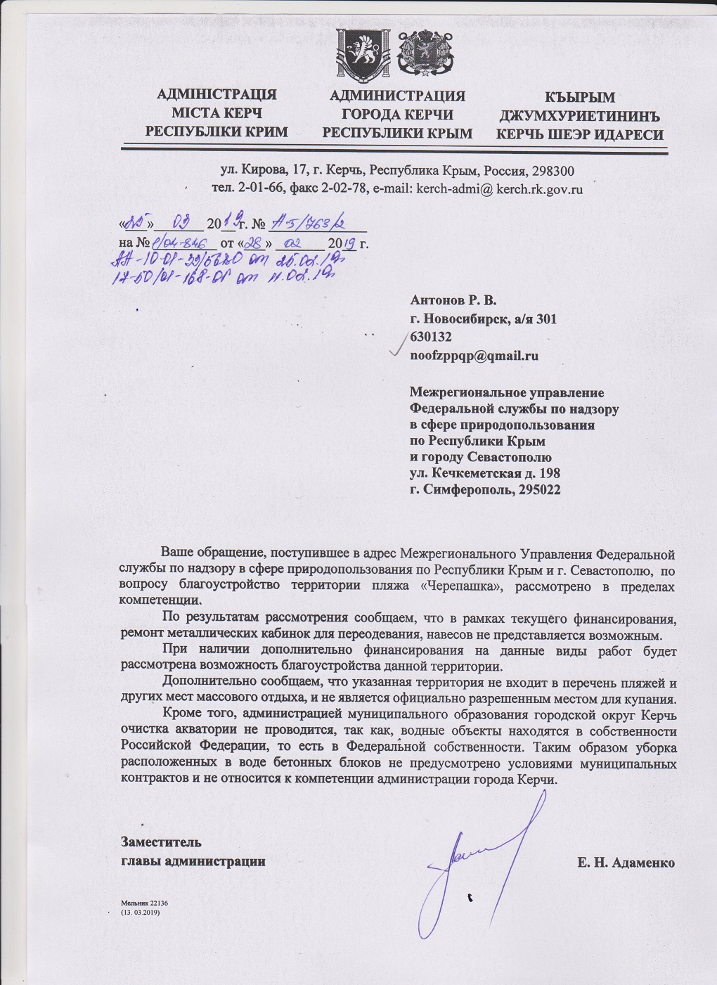47032 уточняю адрес, гор пляж по Кирова, кстати глюк с координатами из за того что вы обновили версию, а все жалобы были у мегя поданы из старой версии. По приложению, сделайте пж при просмотре сообщений так, чтоб после выхода из просмотра сообщения возвращаться в тоже место списка сообщений чтоб видно было сообщение которое читал. И при загрузке фото сделайте на андроиде чтоб заходил в папку которая открывалась ранен, а то пр ходиться по каталогу гулять в поисках папки с фото Статус: