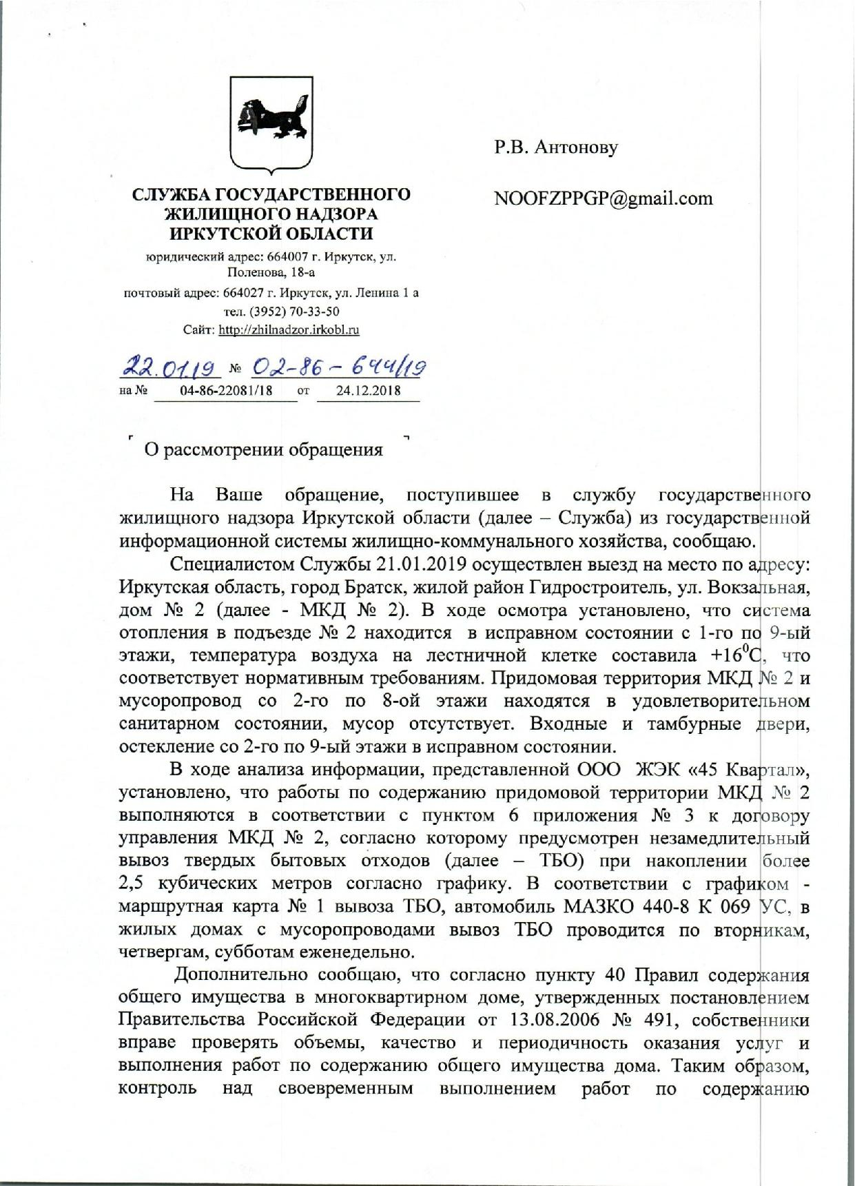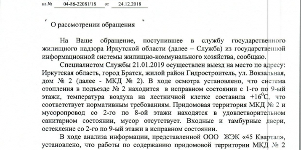Номер жалобы:47356 Тип жалобы:Иные проблемы ЖКХ Название объекта: Регион:Иркутская область Город:Братск Адрес:ул Вокзальная, 2 Описание жалобы:Во 2 подъезде нет отоплерия около мусоропровода. Батареи холодные Статус:
