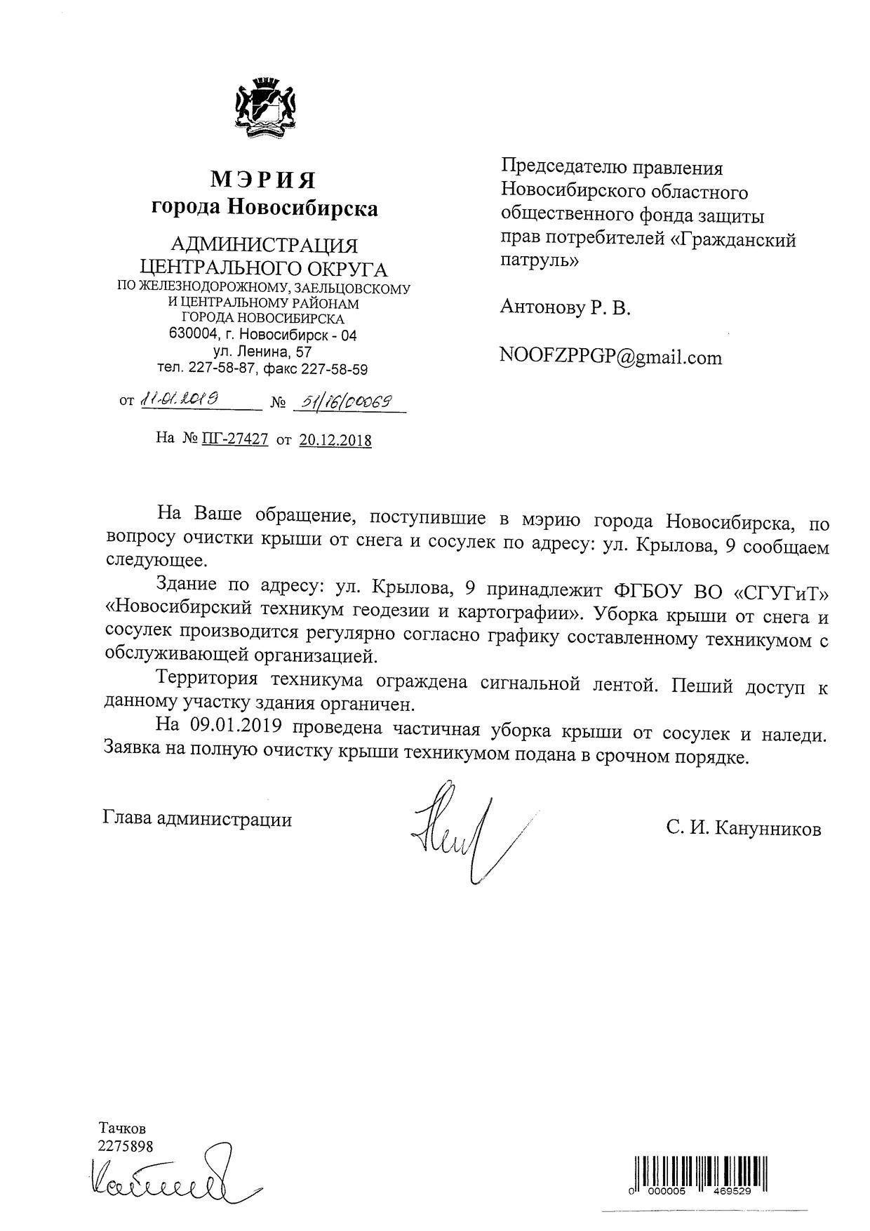 Номер жалобы:47329 Тип жалобы:Иные проблемы ЖКХ Название объекта: Регион:Новосибирская область Город:Новосибирск Адрес:улица Крылова, 5 Описание жалобы:Сосульки на крыше дома Статус: