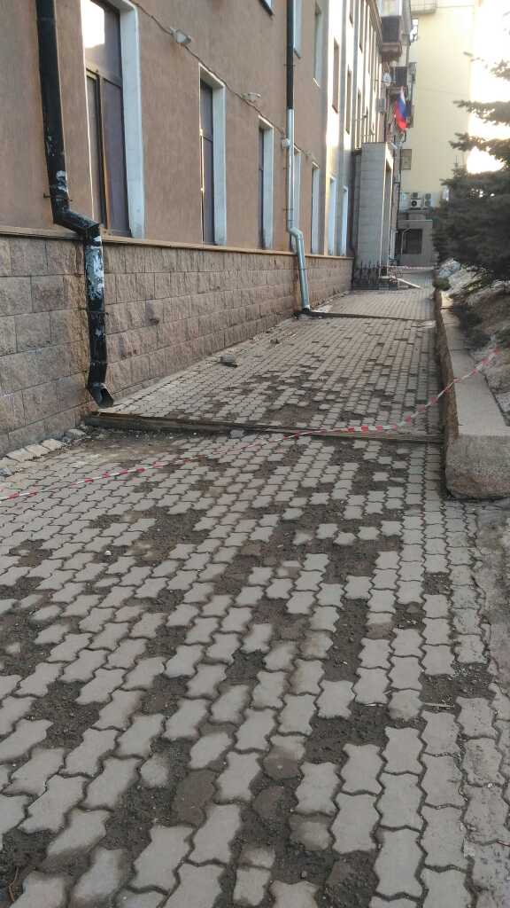 1. Ул. Тимирязева 36, заменить плитку и вровень с дорожкой установить стоки для воды и закрыть их решеткой;