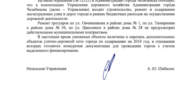Номер жалобы:52121 Тип жалобы:Прочее Название объекта: Регион:Челябинская область Город:Челябинск Адрес:улица Овчинникова, 1 Описание жалобы:Разрушена тротуарная плитка и пошла волной.