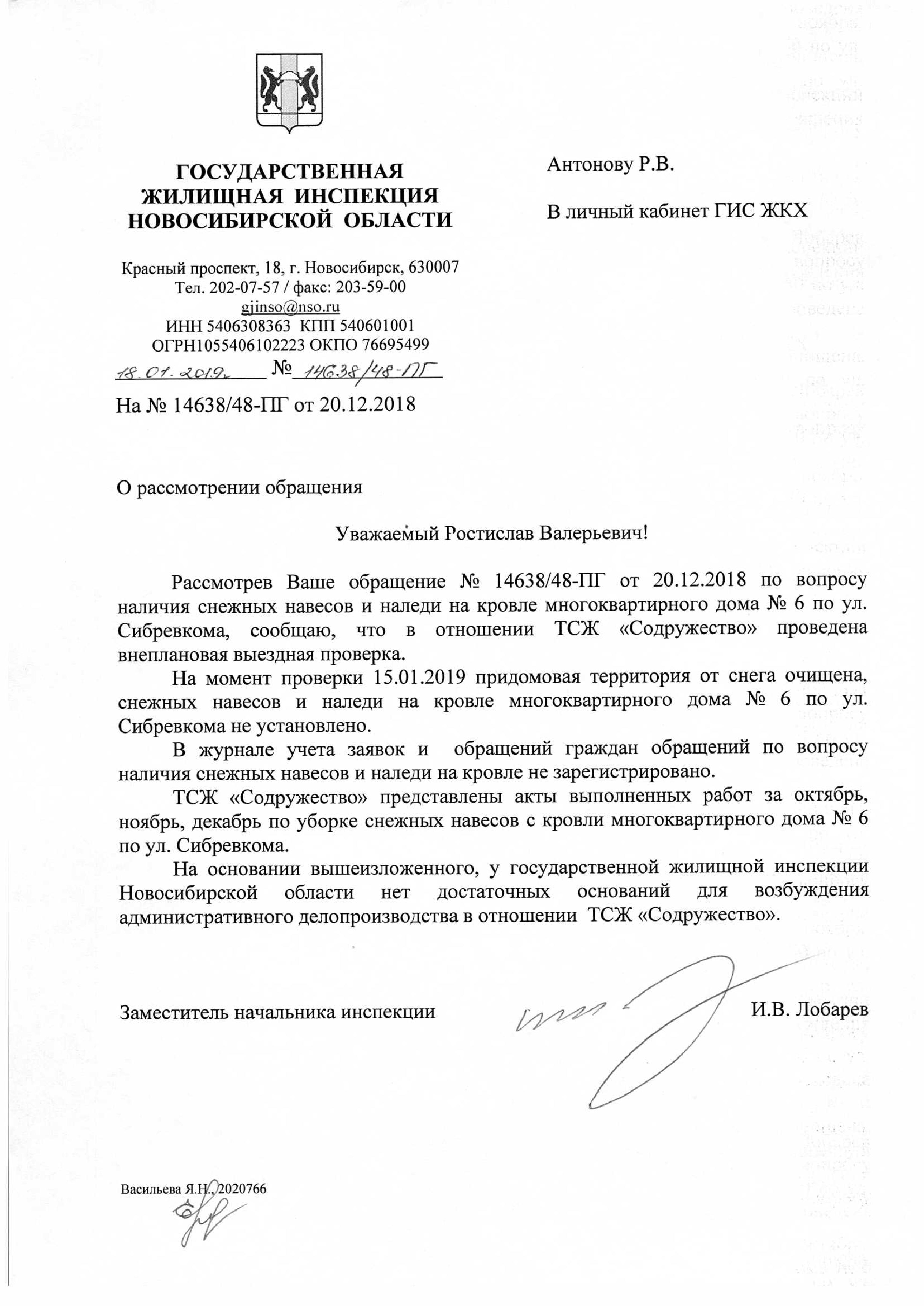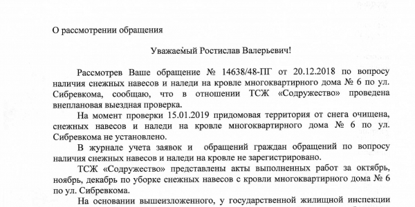 Номер жалобы:47263 Тип жалобы:Иные проблемы ЖКХ Название объекта: Регион:Новосибирская область Город:Новосибирск Адрес:Новосибирск, улица Сибревкома, 14 Описание жалобы:Снег на крыше дома Статус: