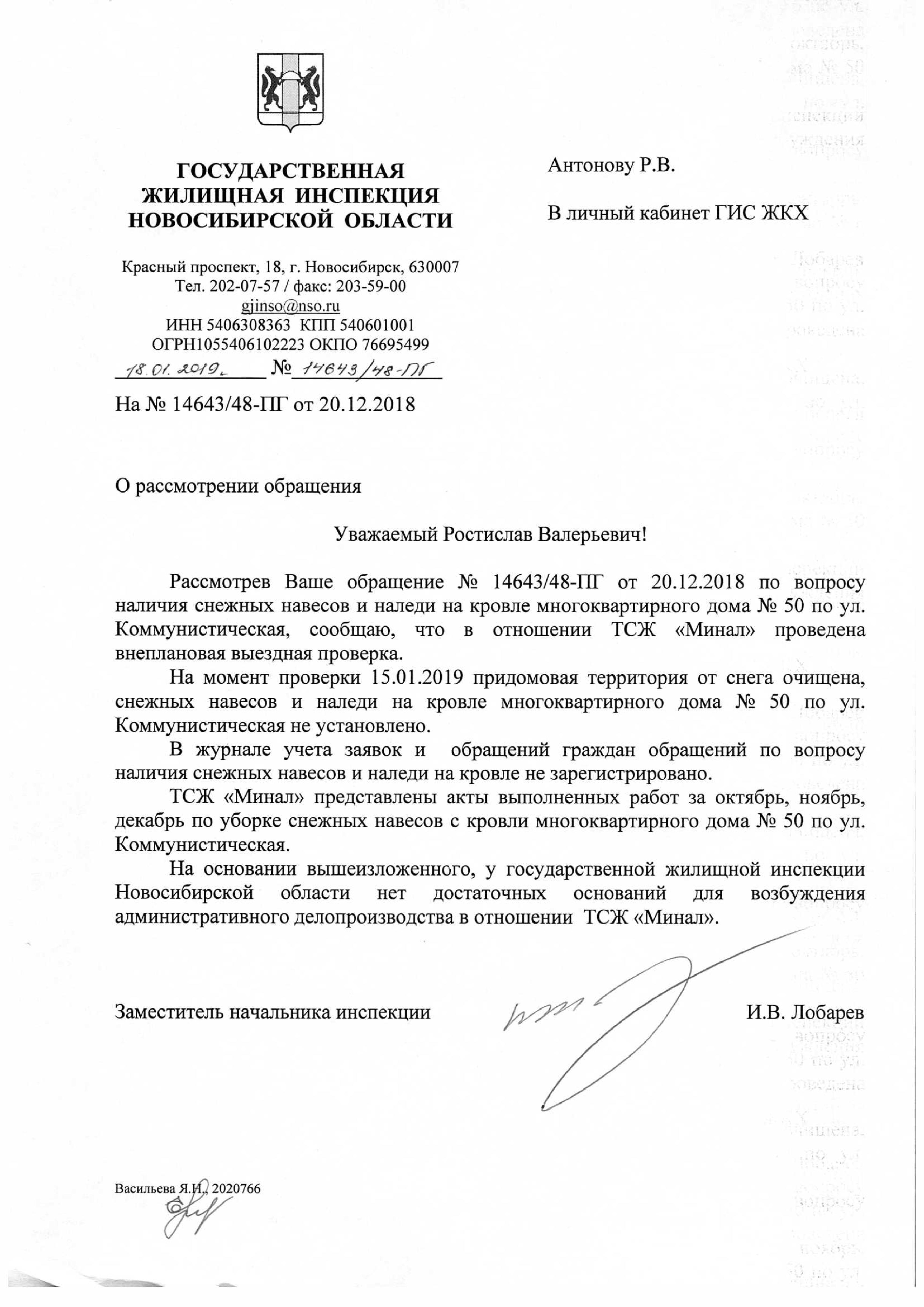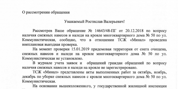 Номер жалобы:47245 Тип жалобы:Иные проблемы ЖКХ Название объекта: Регион:Новосибирская область Город:Новосибирск Адрес:ул. Коммунистическая, 50 Описание жалобы:Снег на крыше дома Статус: