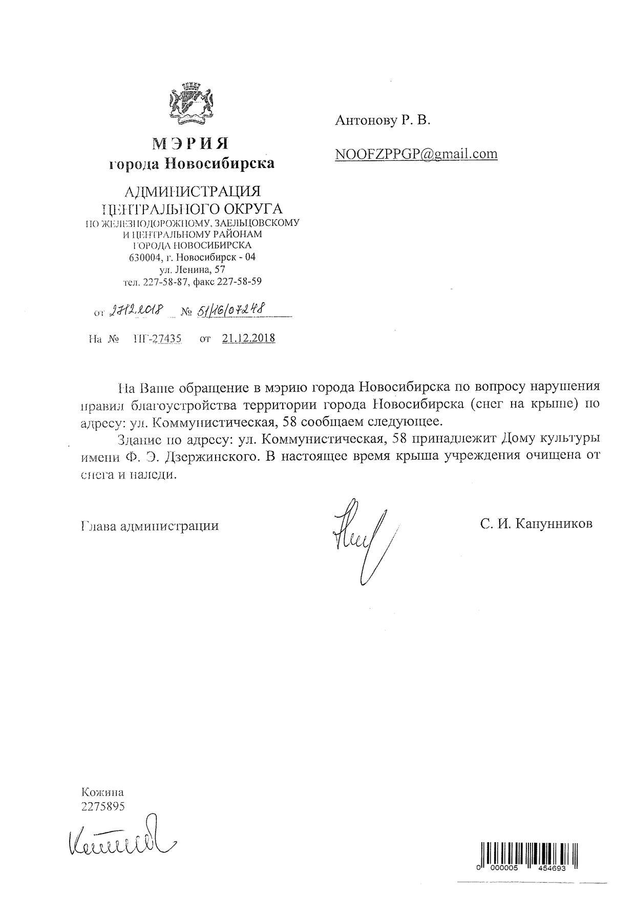 Номер жалобы:47252 Тип жалобы:Иные проблемы ЖКХ Название объекта: Регион:Новосибирская область Город:Новосибирск Адрес:Новосибирск, Коммунистическая улица, 58 Описание жалобы:Сосульки на крыше дома Статус: