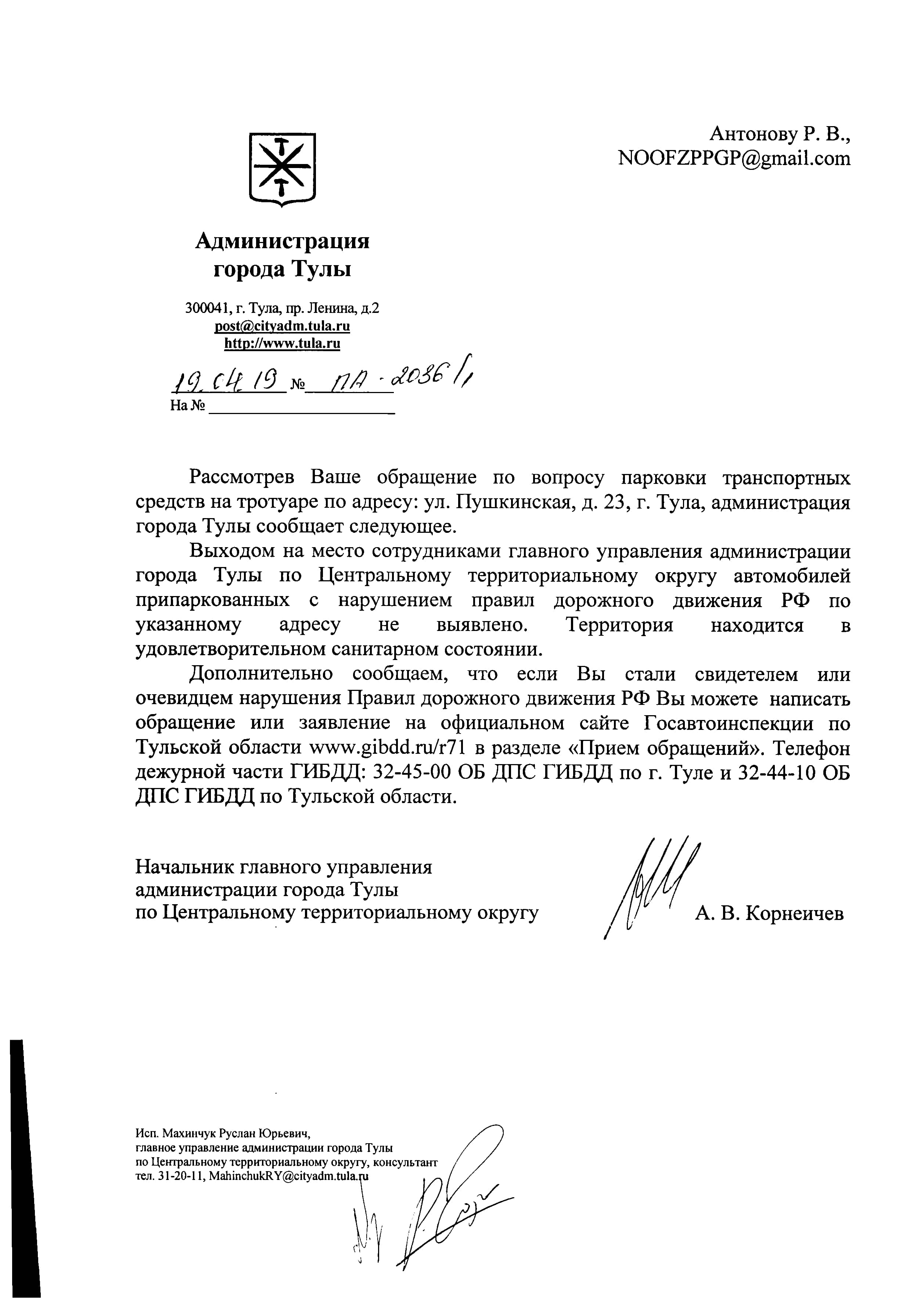 Номер жалобы:50919 Тип жалобы:Прочее Название объекта: Регион:Тульская область Город:Тула Адрес:Пушкинская улица Описание жалобы:Постоянные парковки на тротуаре, подача звукового сигнала без видимых причин, народ напугать. Статус: