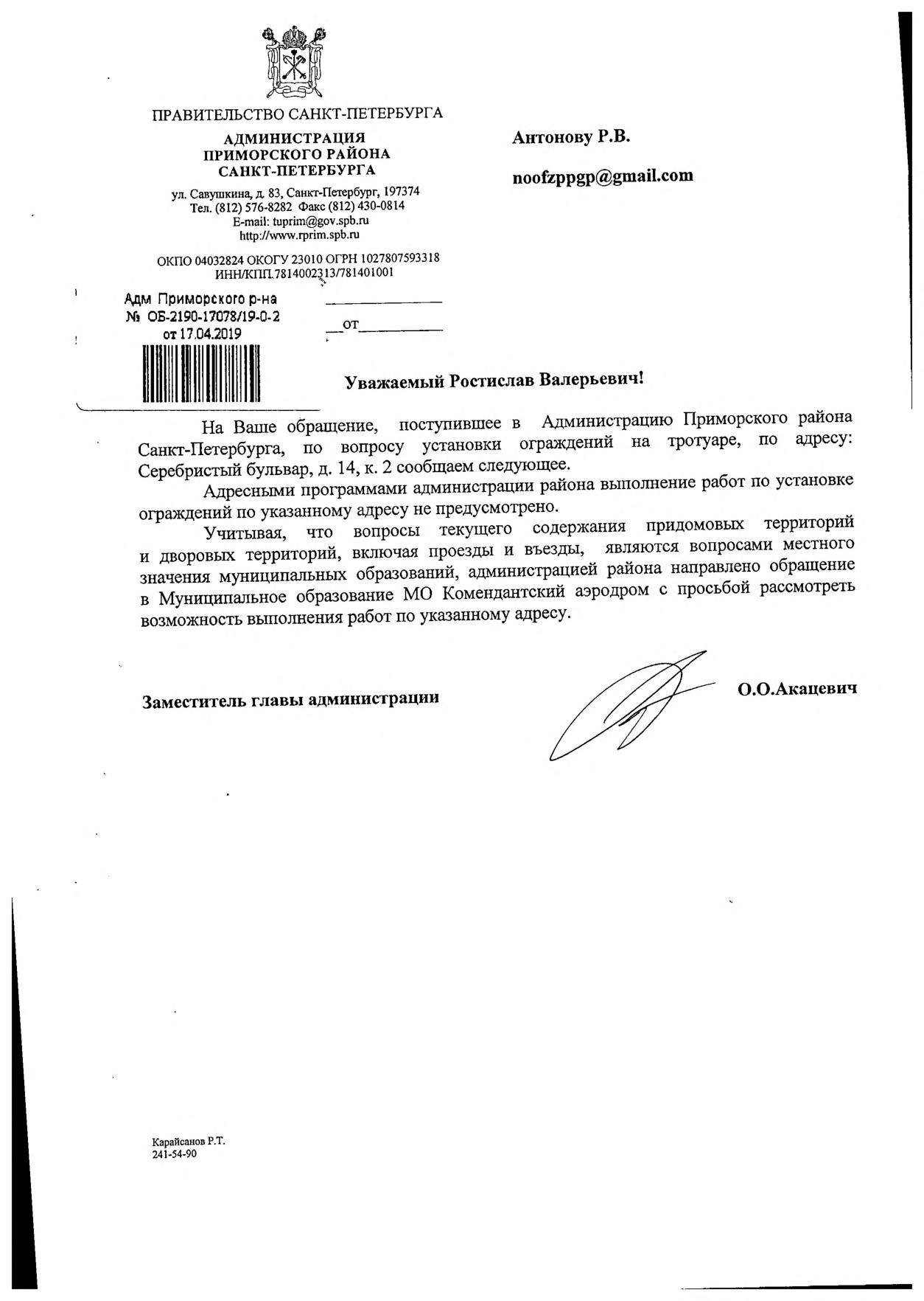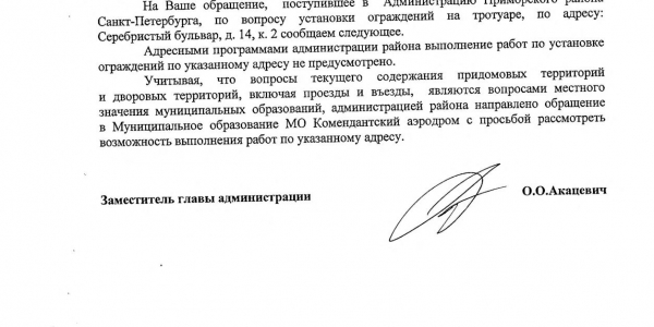 Номер жалобы:50939 Тип жалобы:Прочее Название объекта: Регион:Санкт-Петербург Город:Санкт-Петербург Адрес:Серебристый бульвар, 14к2 Описание жалобы:Здравствуйте,это Детская поликлиника номер 4 для того чтобы попасть в нее нужно пройти сквозь автомобили . И эта проблема существует не один год. Не однократно заведующей жаловались на парковку автомобилей . Просили решить вопрос о постановке там знака запрещающего парковку. Ну просто по человечески мамочка с коляской пройти не может, нужно идти в обход . Статус: