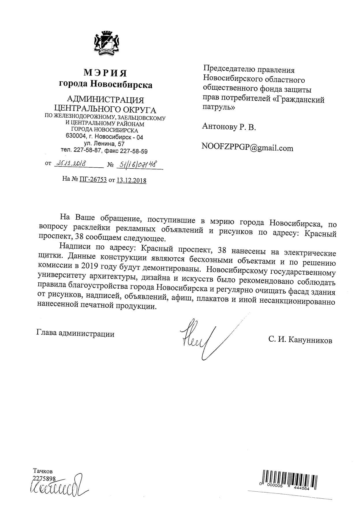 Номер жалобы:47008 Тип жалобы:Иные проблемы ЖКХ Название объекта: Регион:Новосибирская область Город:Новосибирск Адрес:Новосибирск, Красный проспект, 38 Описание жалобы:Надписи на гараже Статус: