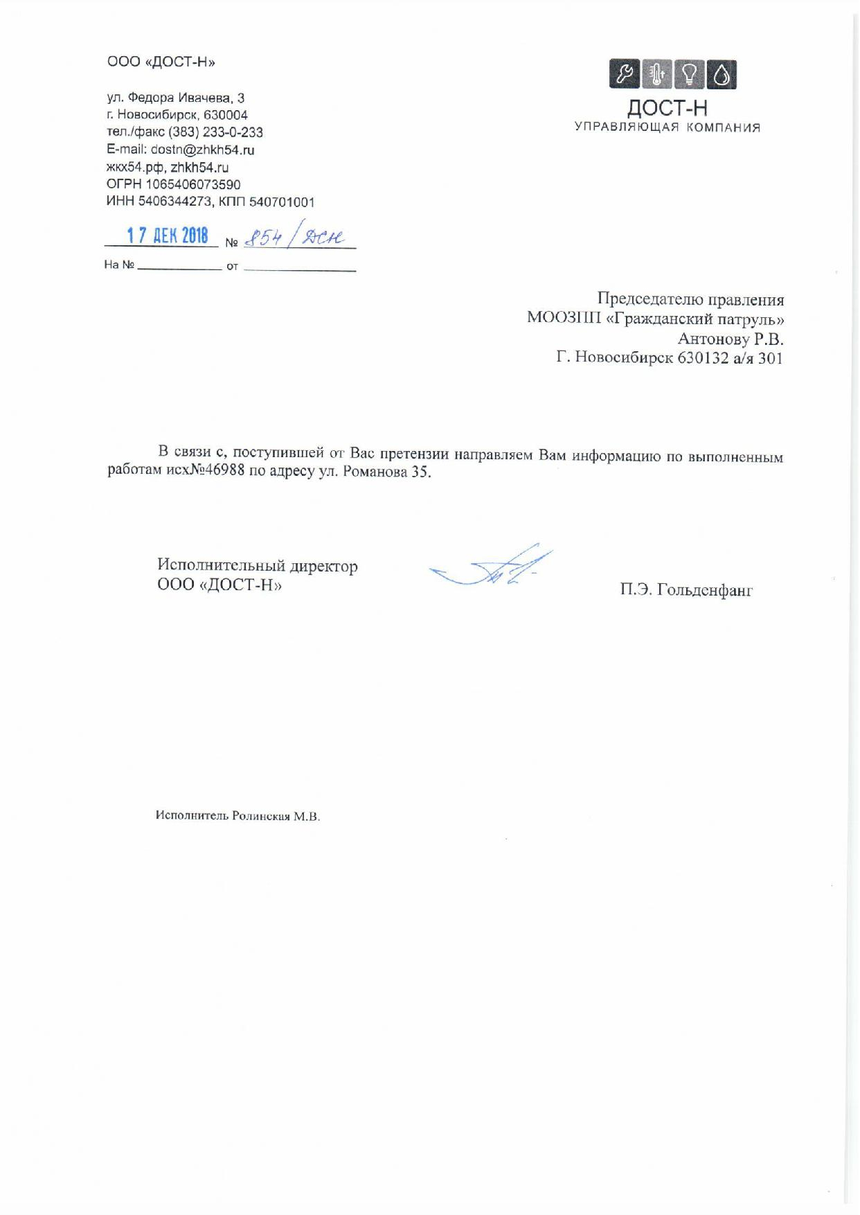 Номер жалобы:46988 Тип жалобы:Иные проблемы ЖКХ Название объекта: Регион:Новосибирская область Город:Новосибирск Адрес:Новосибирск, улица Романова, 35 Описание жалобы:Снег на крыше дома Статус:
