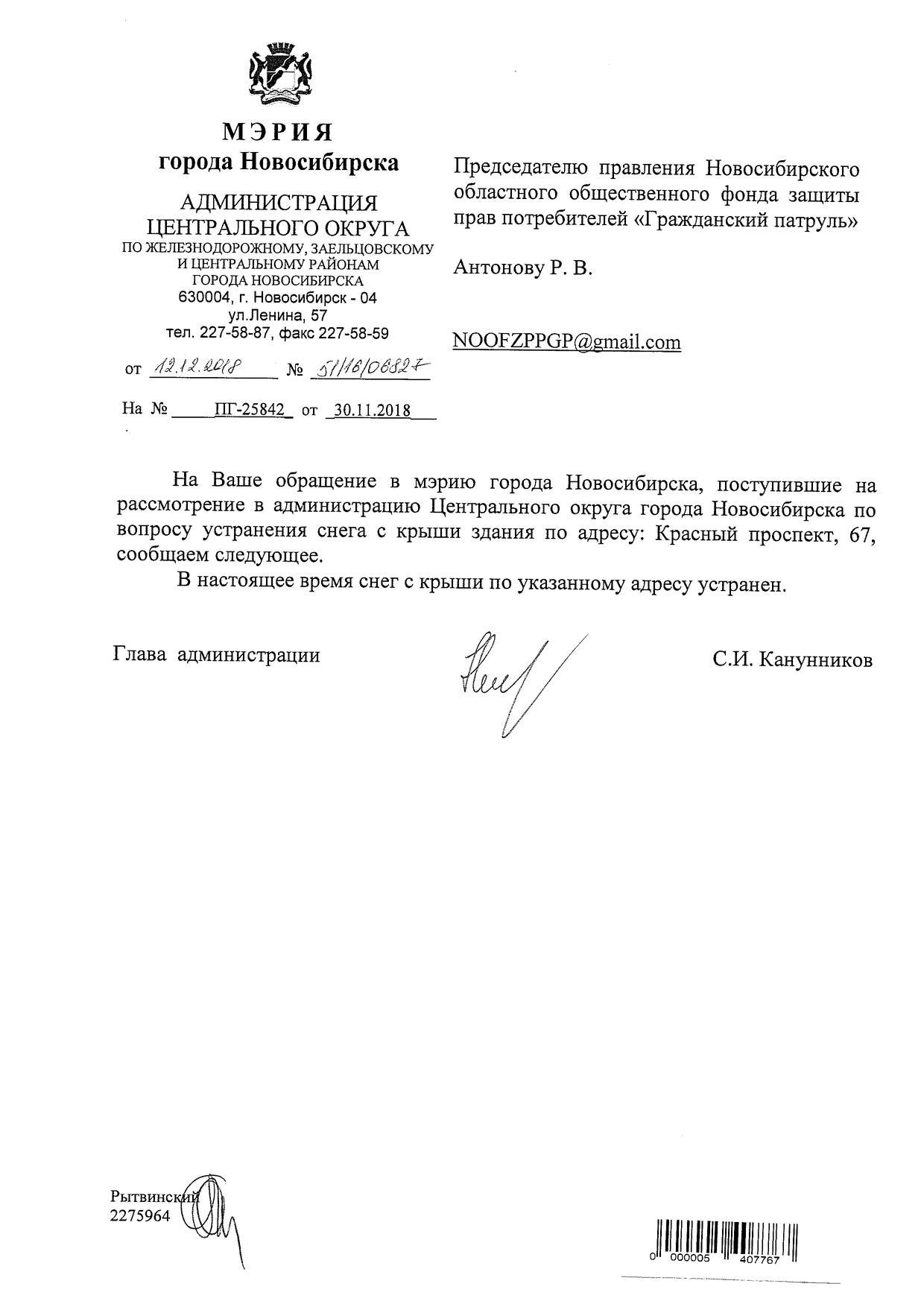 Номер жалобы:46608 Тип жалобы:Иные проблемы ЖКХ Название объекта: Регион:Новосибирская область Город:Новосибирск Адрес:Новосибирск, Красный проспект, 65 Описание жалобы:46607/ Снег на крыше дома Статус: