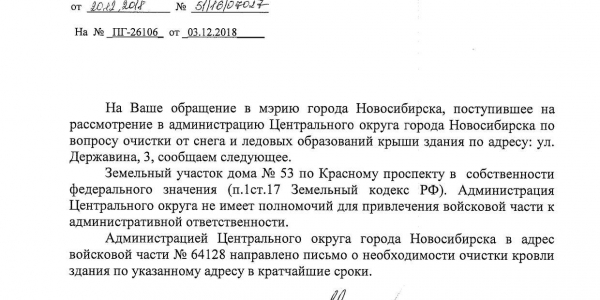 Номер жалобы:46588 Тип жалобы:Иные проблемы ЖКХ Название объекта: Регион:Новосибирская область Город:Новосибирск Адрес:Новосибирск, улица Державина, 1 Описание жалобы:Снег на крыше дома Статус: